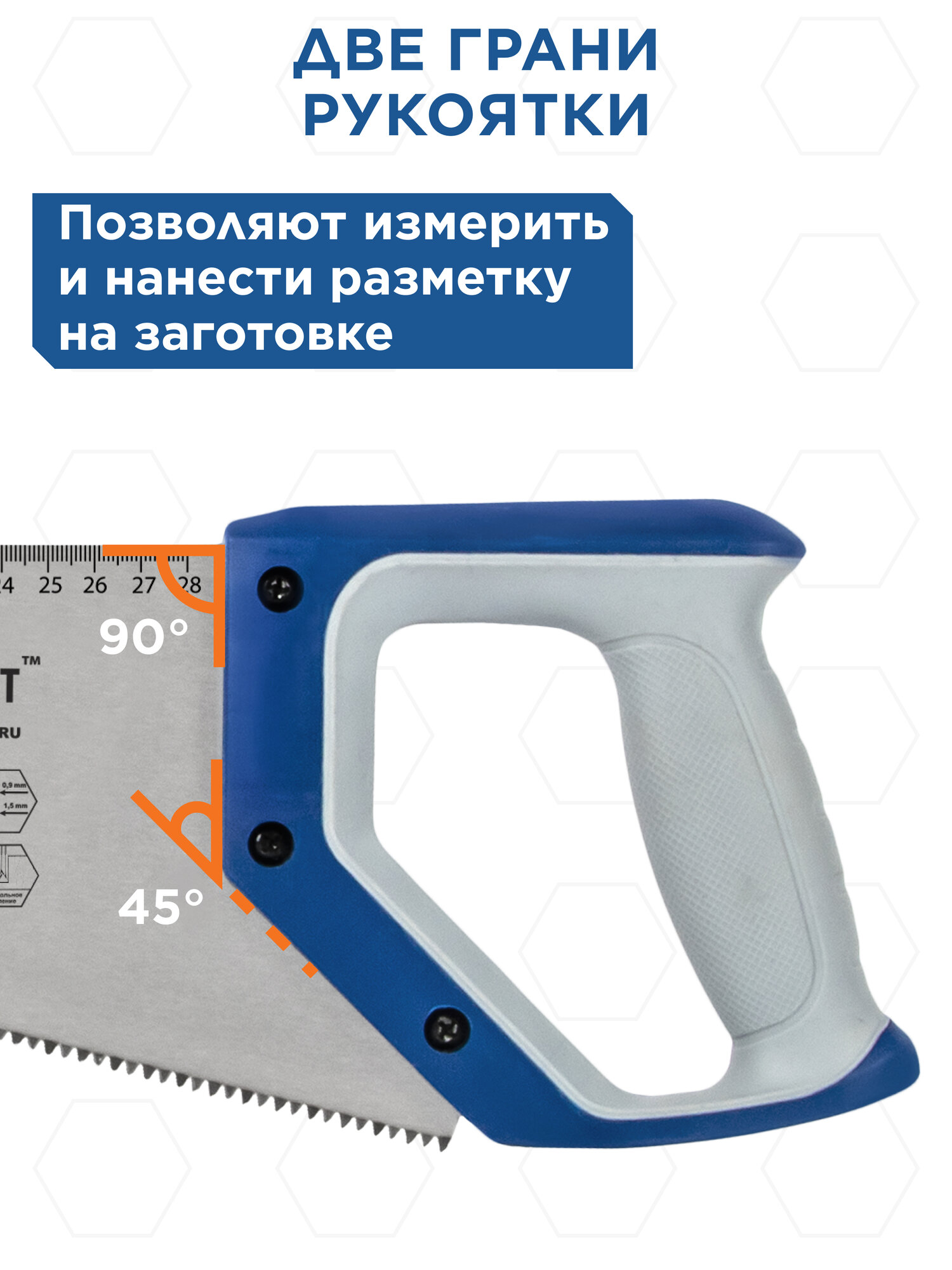 Ножовка по дереву кобальт 450 мм, шаг 3,5 мм/ 7 TPI, закаленный зуб, 3D-заточка