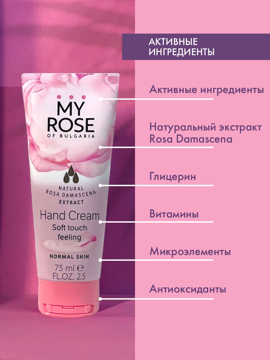 My Rose of Bulgaria Крем для рук для нормальной кожи, 75 мл, ROSE OF BULGARIA интересное: