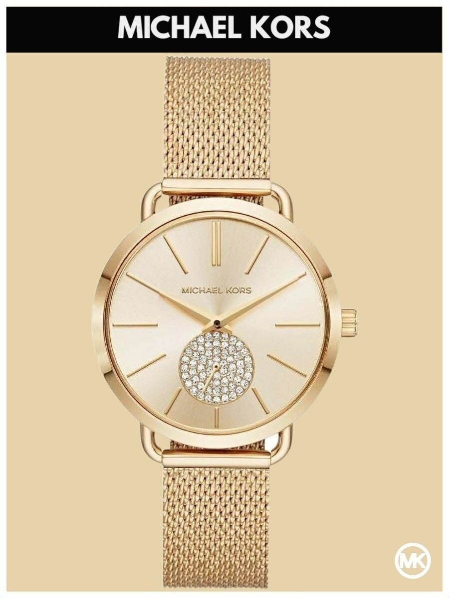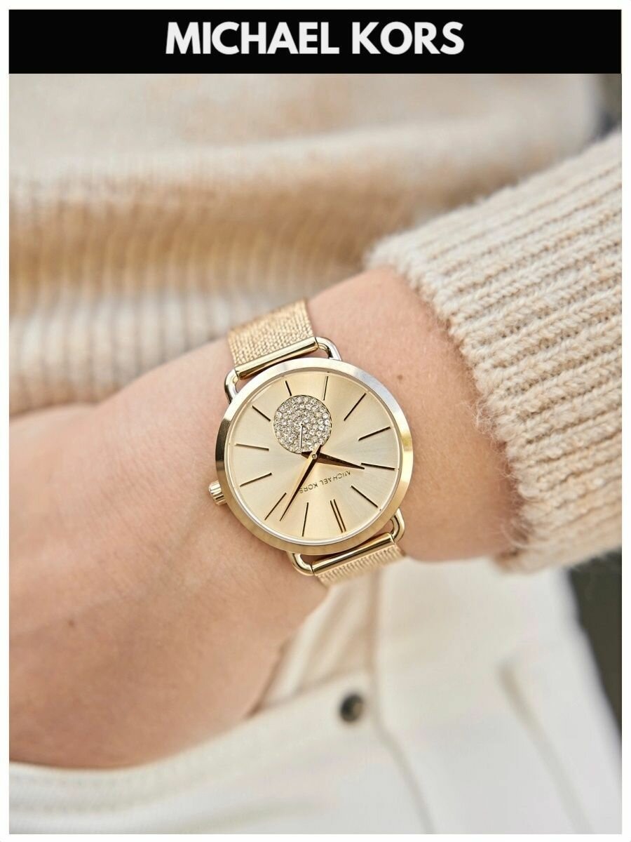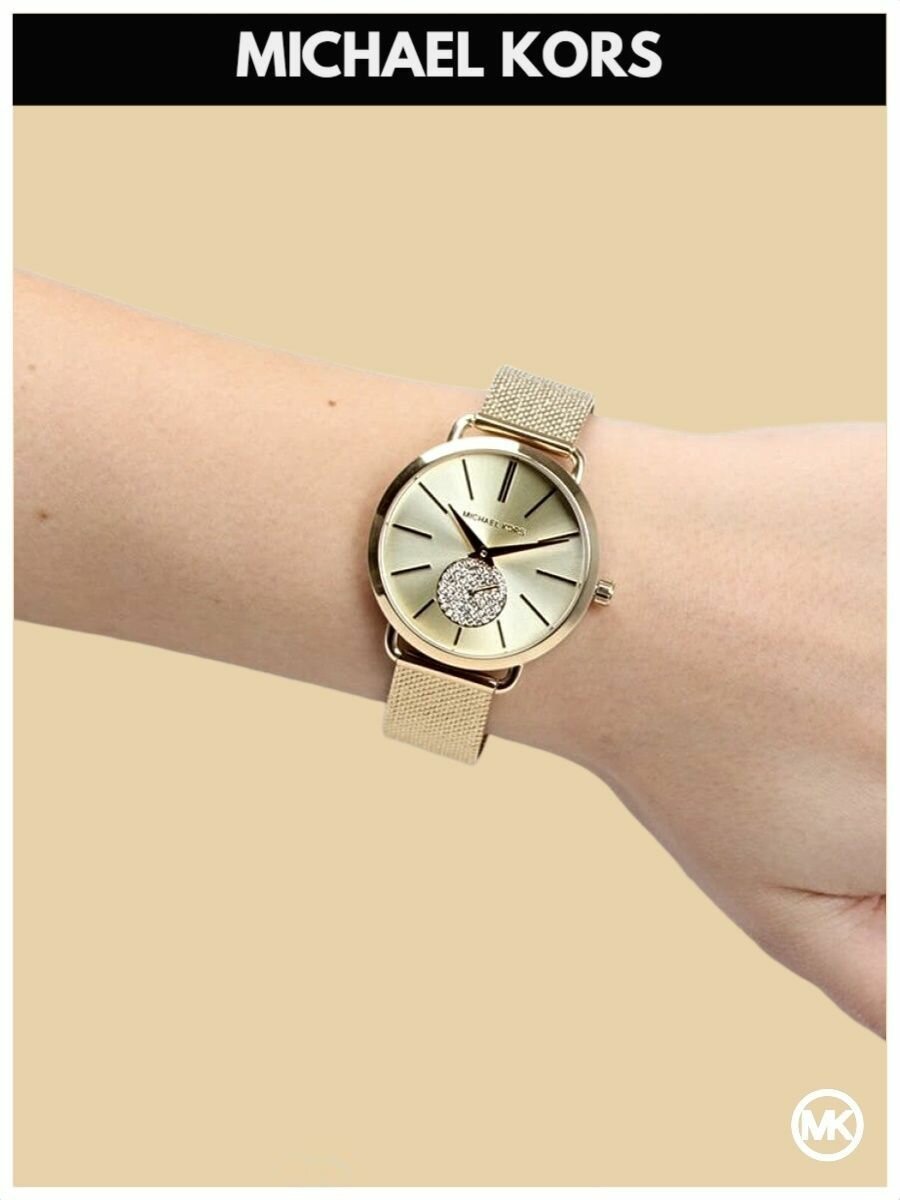 СохранитьЖенские наручные часы Michael Kors со стразами Portia золотые маленькие стальные миланский браслет интересное: