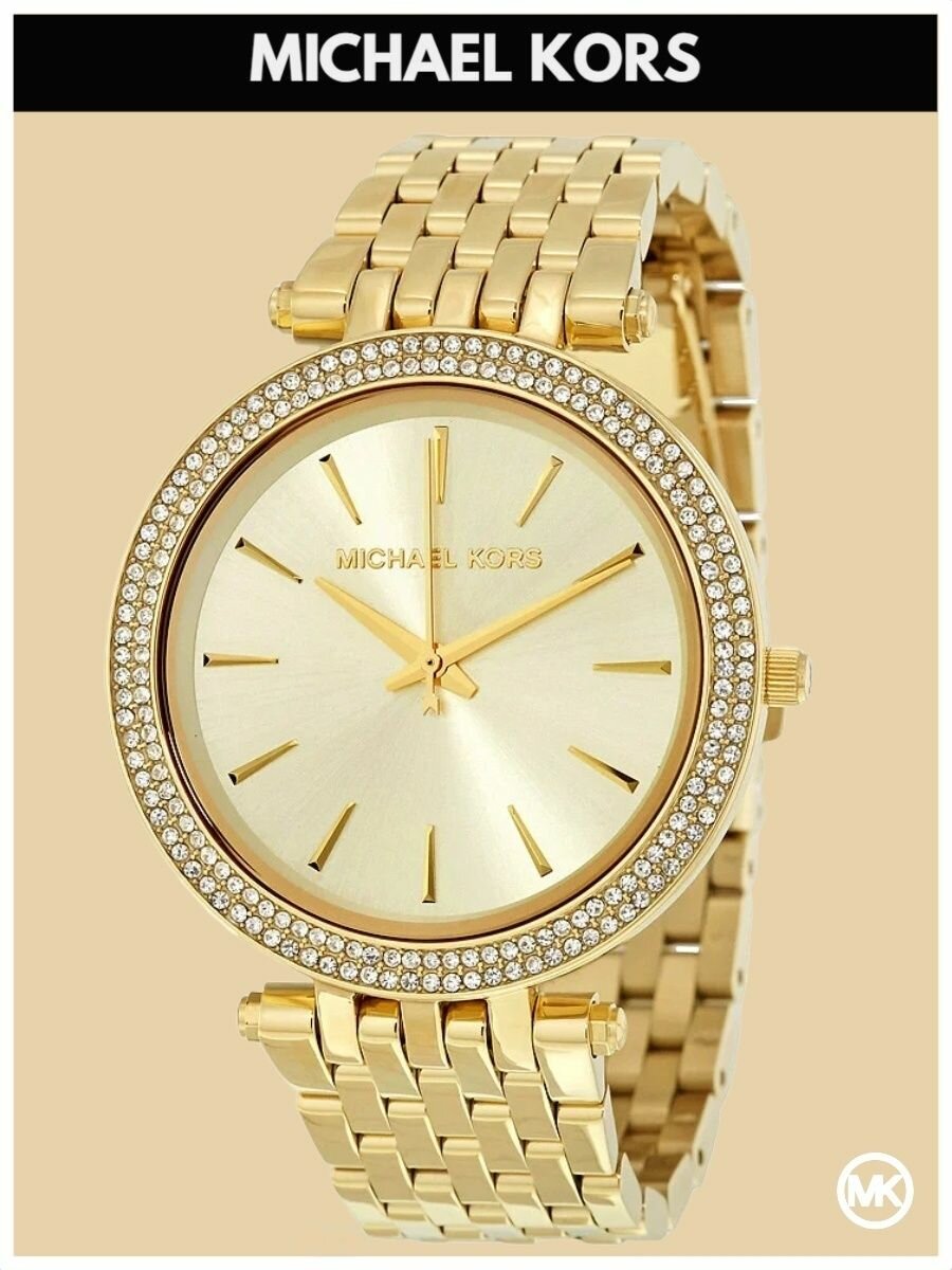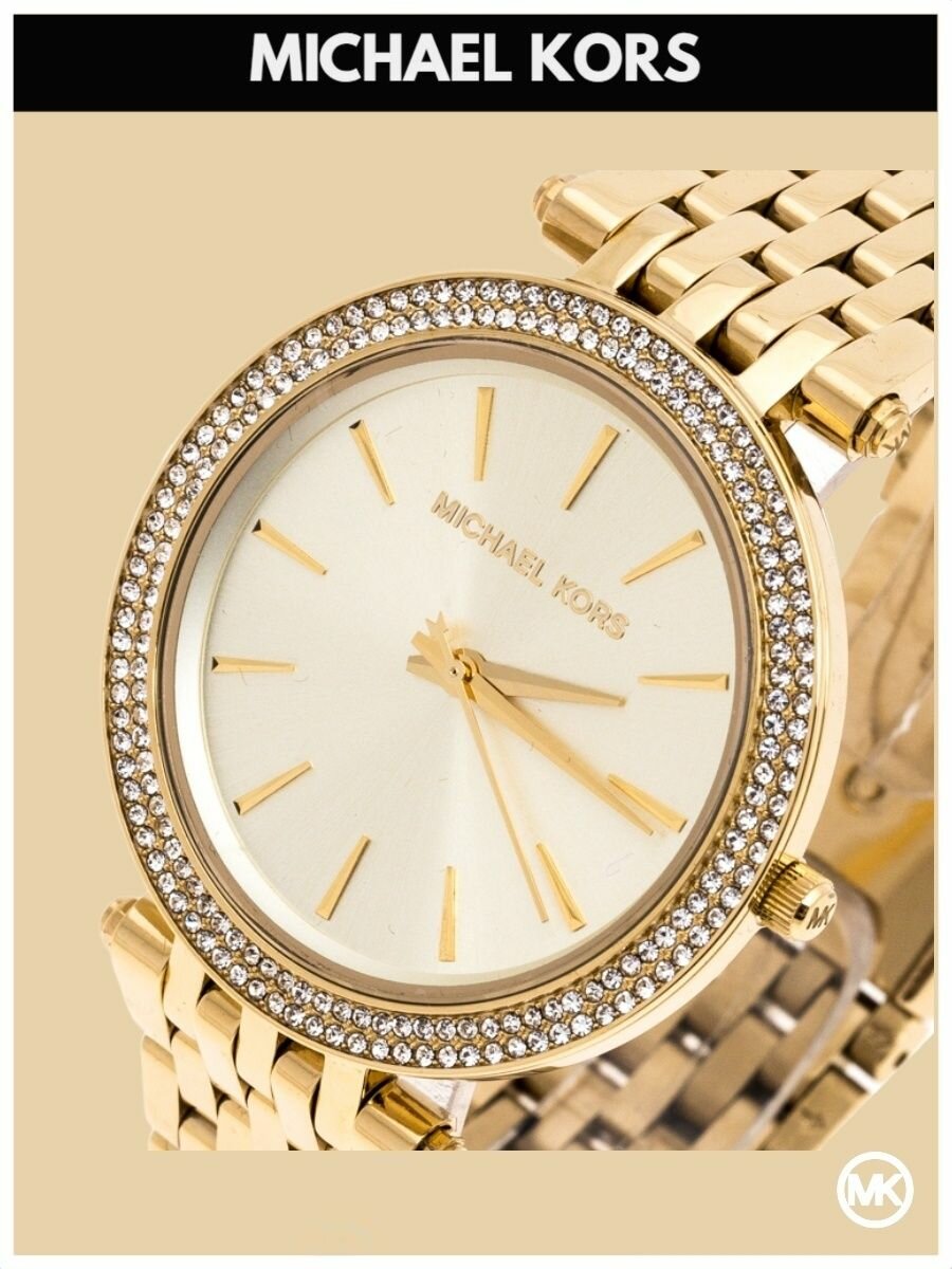 Женские наручные классические часы Michael Kors со стразами золотистые, водонепроницаемые