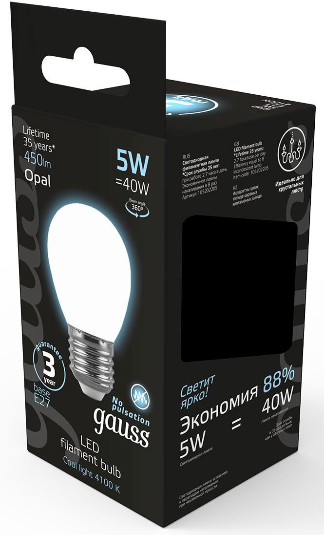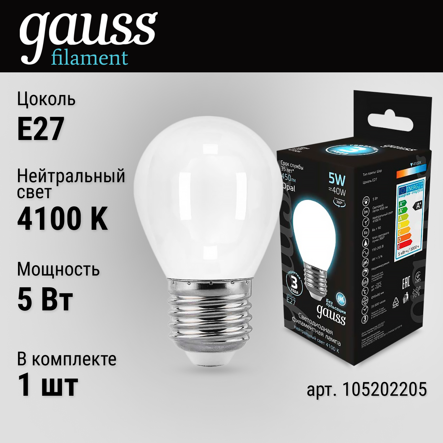 Лампа светодиодная gauss 105202205, E27, G45, 5 Вт, 4100 К