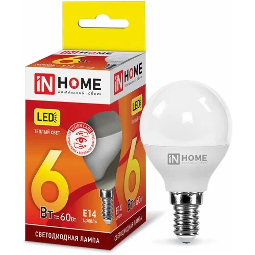 Лампа светодиодная IN HOME LED-ШАР-VC, E27, P45, 6 Вт, 4000 К