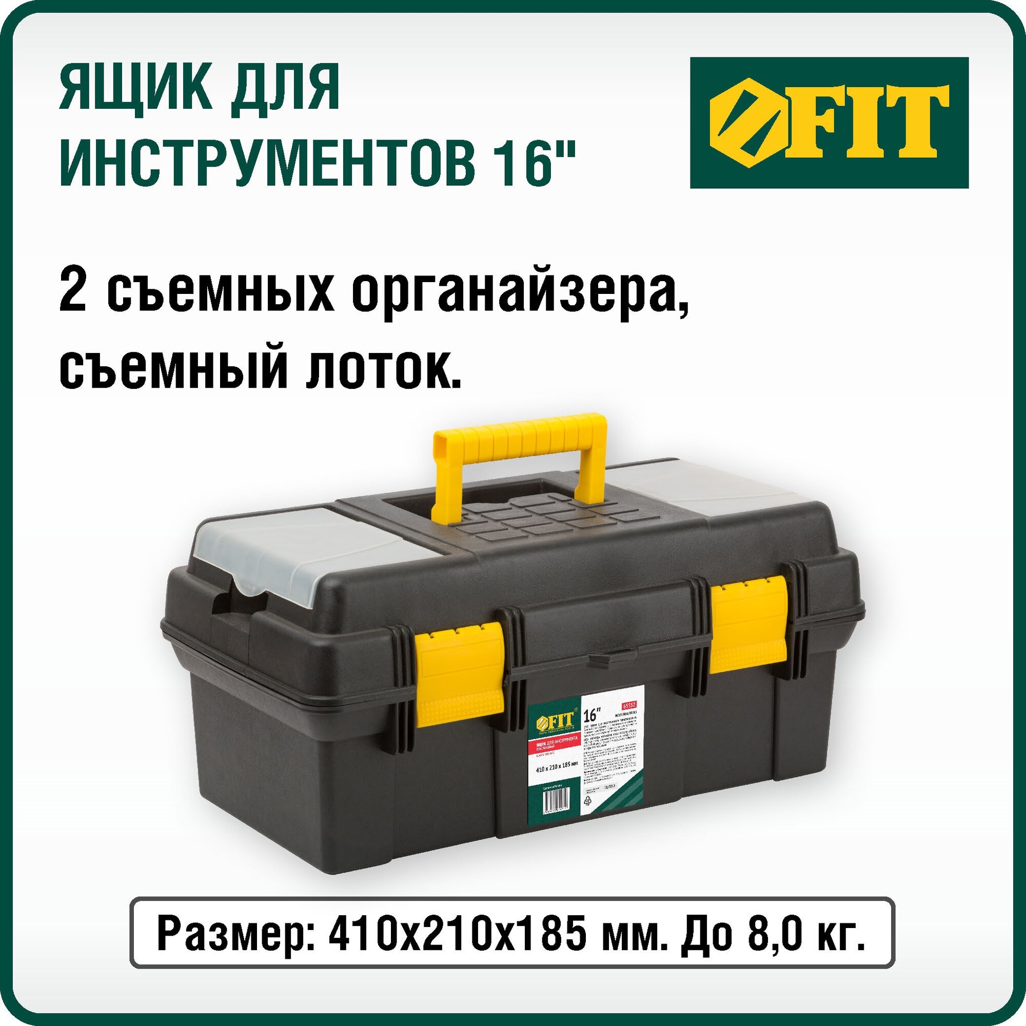 Купить Ящик для инструмента, ящик для инструментов с органайзером FIT 65552, 41x21x18.5 см, черный/желтый
