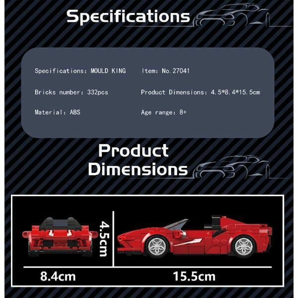 Ниже Вы можете прочитать отзывы на Конструктор Mould King 27041 MOC Технологическая модель суперкара F8, 332 деталей, серии Спид Чемпионс, Детские игрушки, Коллекционные игрушки, ознакомится с подробными характеристиками, посмотреть интересные обзоры и фотографии на Конструктор Mould King 27041 MOC Технологическая модель суперкара F8, 332 деталей, серии Спид Чемпионс, Детские игрушки, Коллекционные игрушки.
