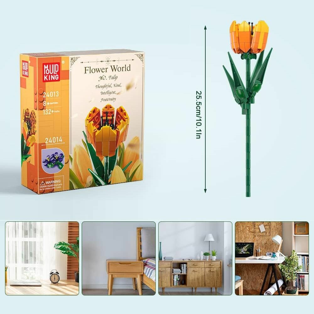 Купить Пластиковый Конструктор Mould King 24013 "Букет цветов: Тюльпан", 132 деталь, Игрушечная имитация букетов, украшения подарков