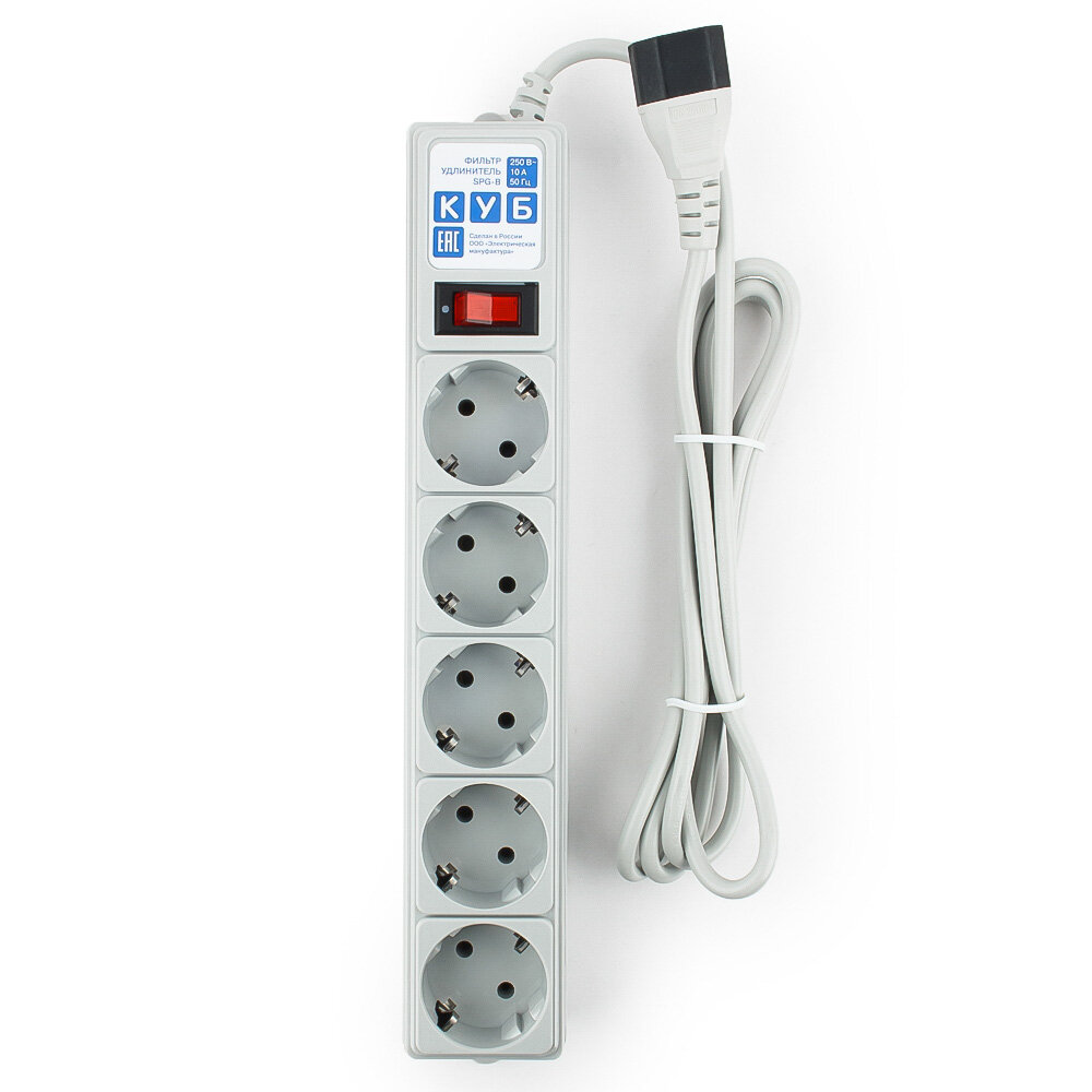 Купить SPG-B-6 PowerCube Фильтр-удлинитель 1.9м 10А/2,2кВт, серый, Электрическая мануфактура