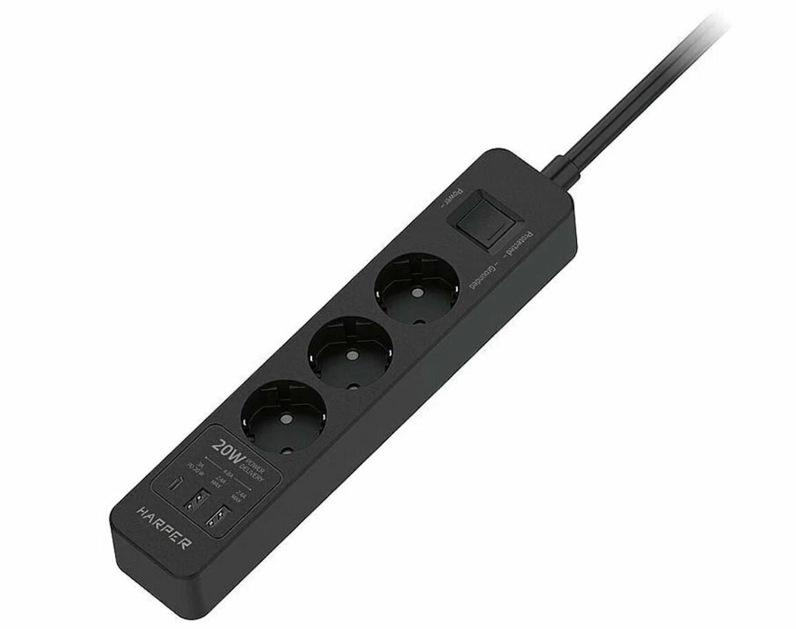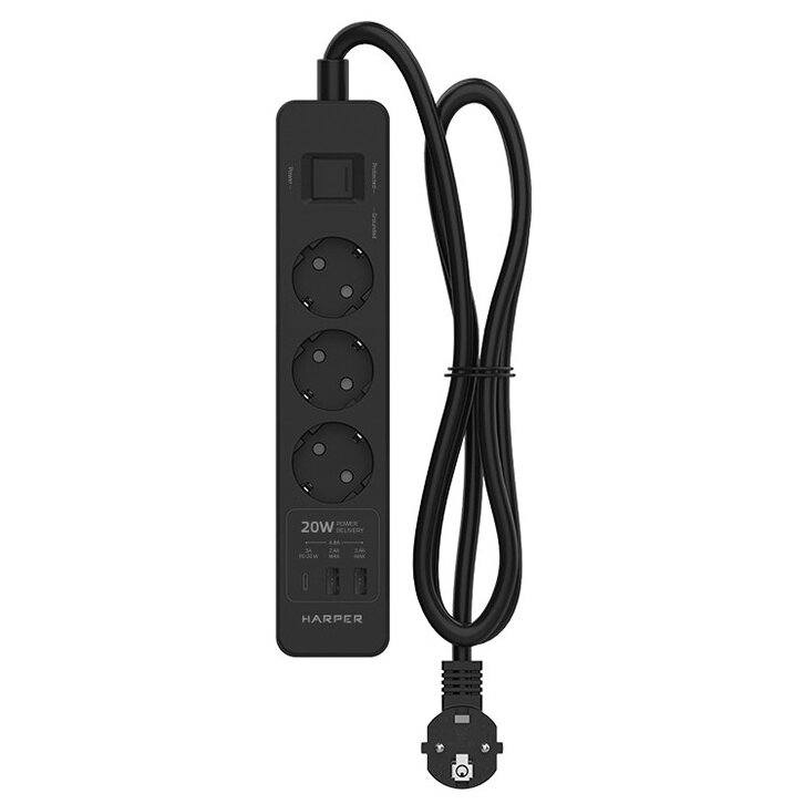 СохранитьHarper Сетевой фильтр с USB зарядкой UCH-430 Black PD3.0 (3 роз.,3м., 2xUSB+1xType-C портами, 4000W) интересное: