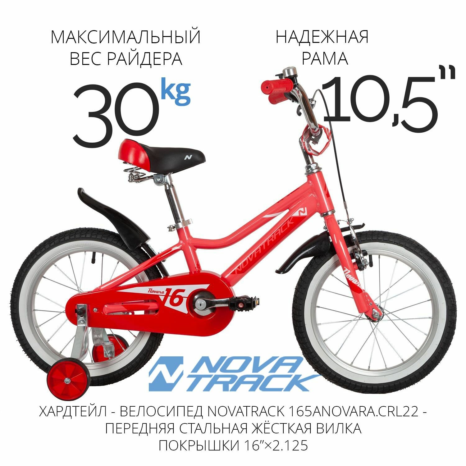Велосипед детский Novatrack Novara 16 (2022) коралловый 153731 (165ANOVARA.CRL22)