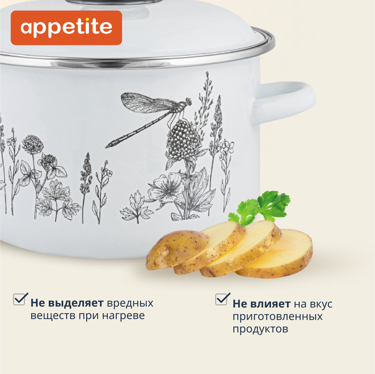 Купить Кастрюля Appetite FLORA-2 4л эмаль, крышка эмаль, индукция