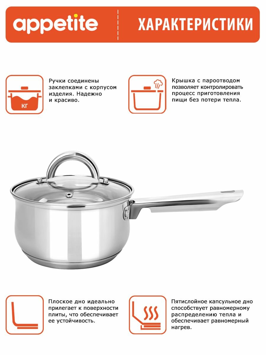 Ковш из нержавеющей стали "Elisa" 1,8л, д17,5см, двойное капсулированное дно, стеклянная крышка, термоупаковка, Appetite