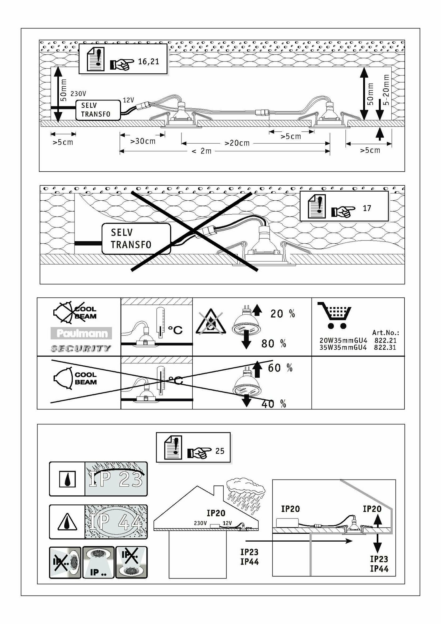 Светильник встраиваемый Paulmann Premium Line D35мм 35Вт 365Лм 2900К GU4 12В IP23 Набор 3шт. Трансформатор 105Va Хром Алюминий 99307
