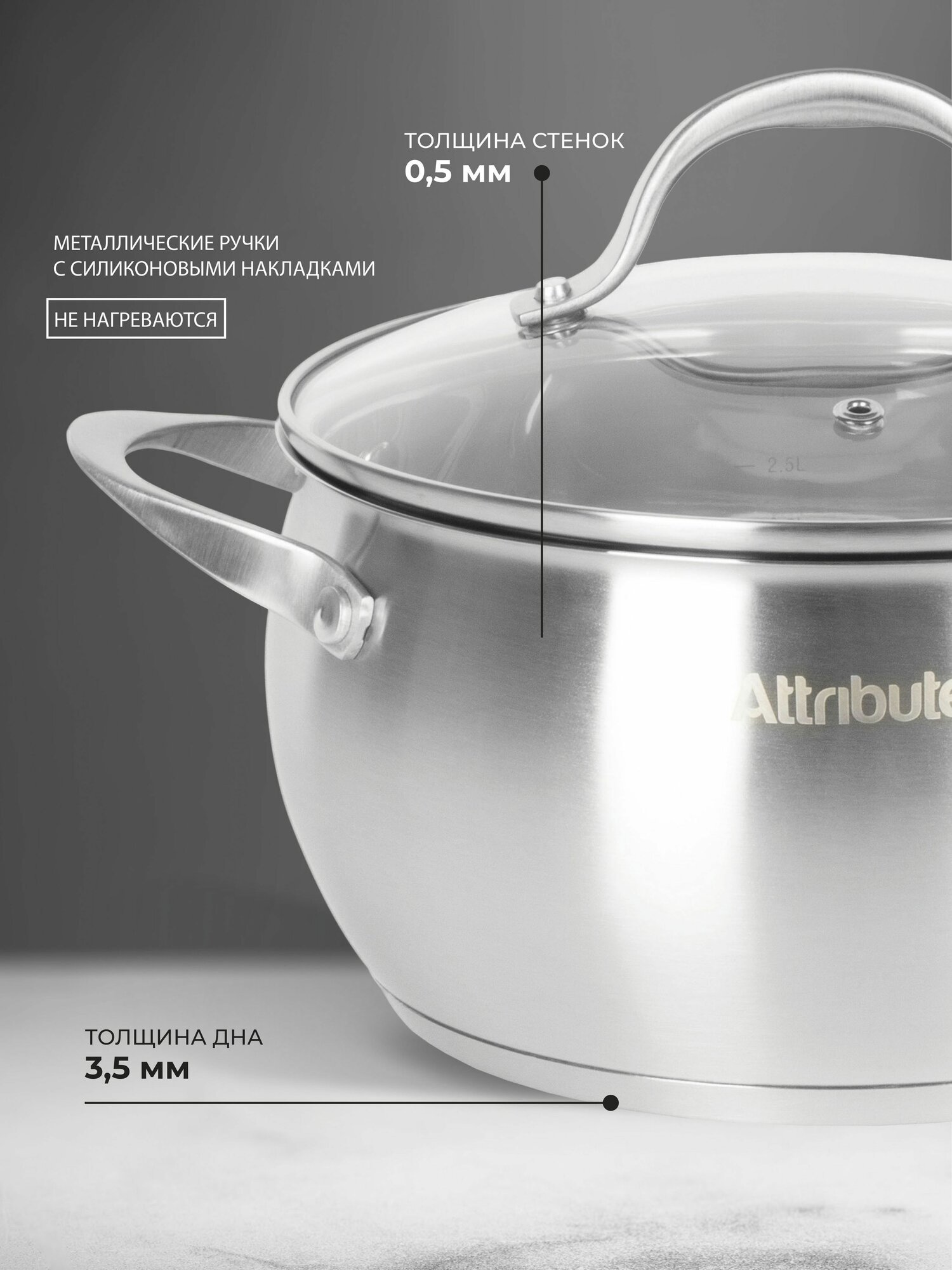 Набор кастрюль ATTRIBUTE из нержавеющей стали для индукционных плит / кастрюля с крышкой 3.4 л + ковш с крышкой 1.7 л