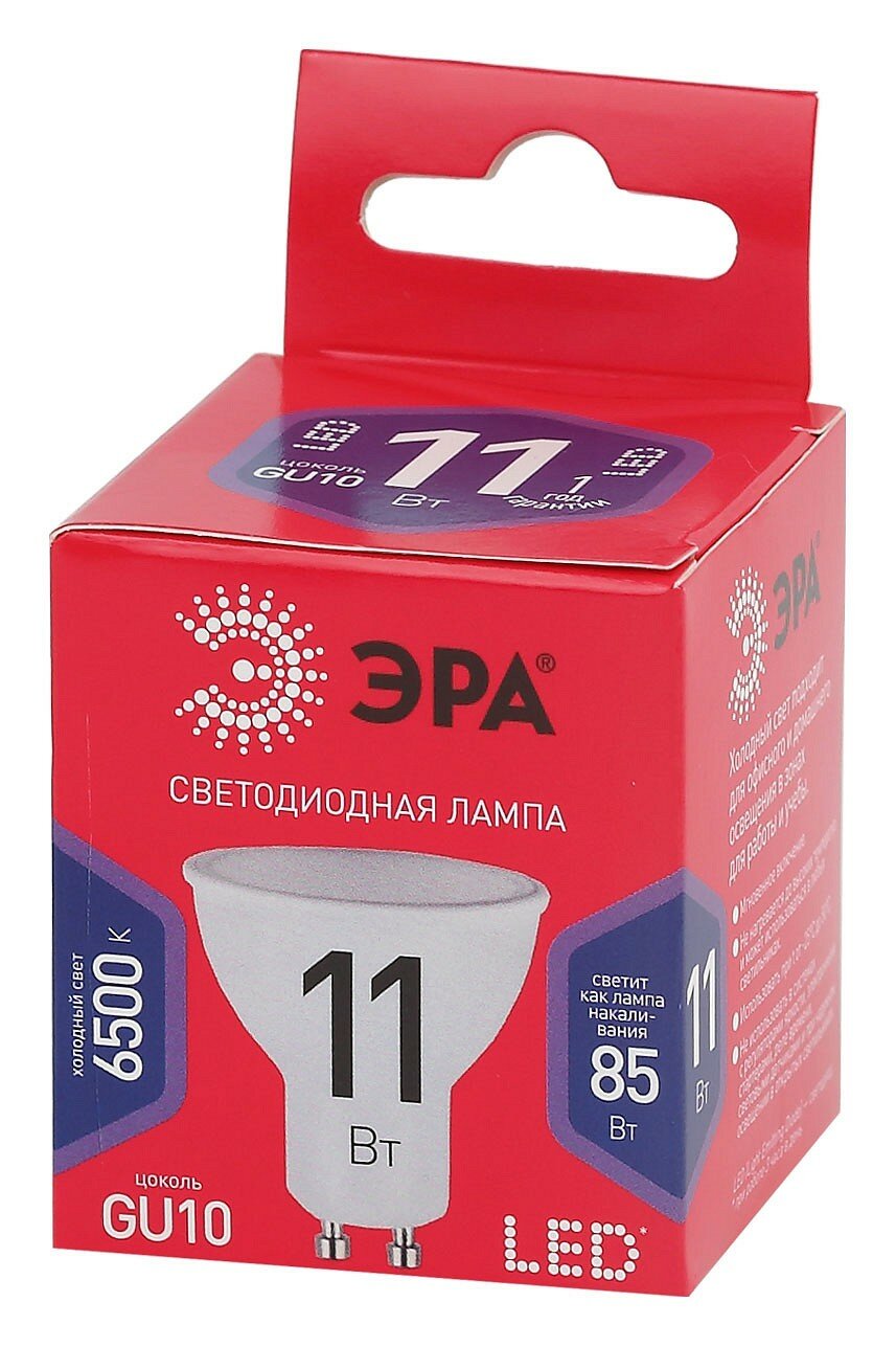 Типы/Лампочки/Светодиодные ЭРА Лампа светодиодная ЭРА GU10 11W 6500K матовая MR16-11W-865-GU10 R Б0045346