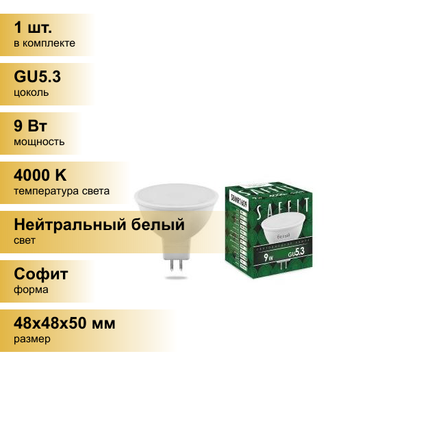Купить SAFFIT Лампа светодиодная, 9W 230V GU5.3 4000K, SBMR1609 55085