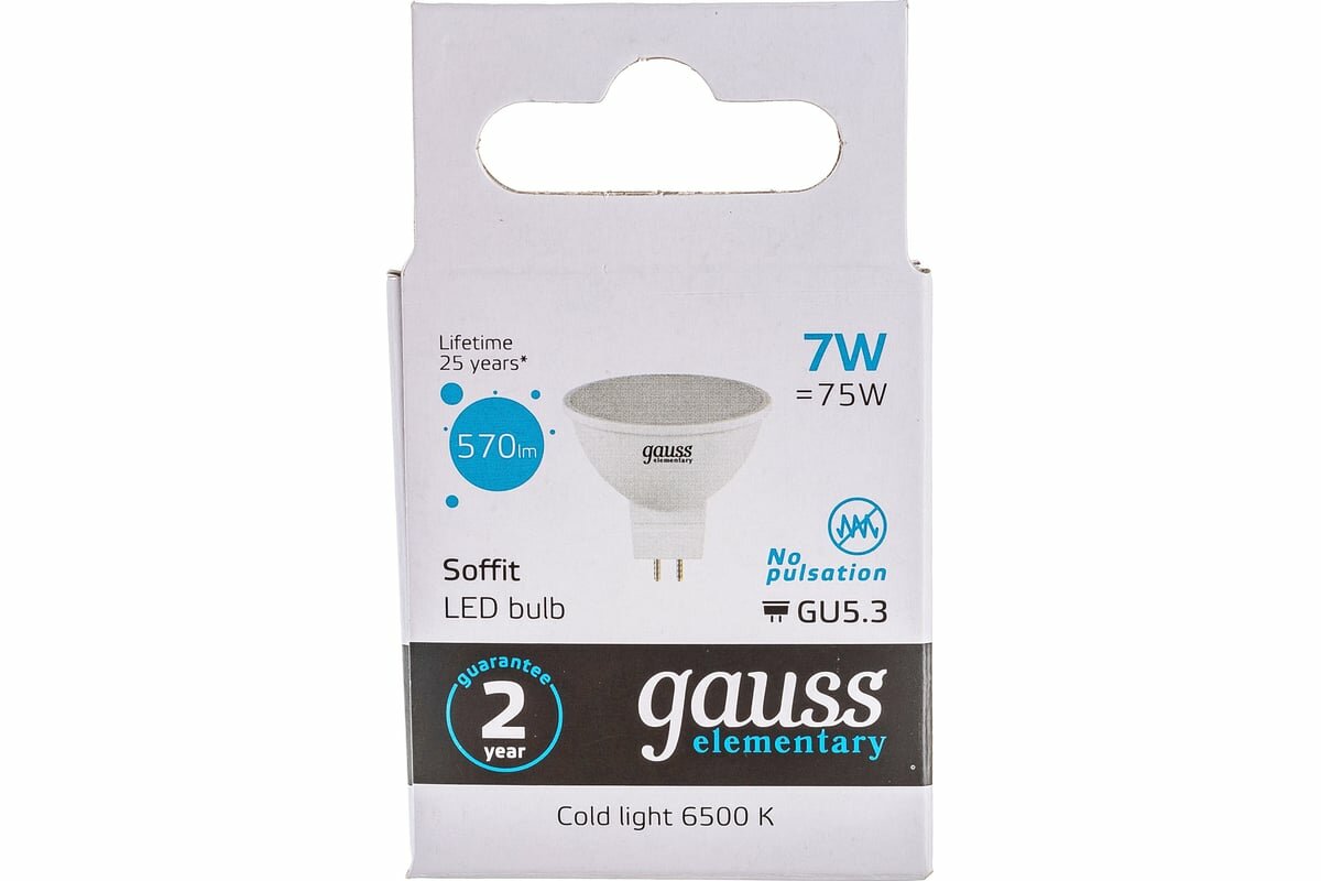 Лампа Gauss Elementary MR16 7W 570lm 6500K GU5.3 LED 13537 (10 шт)
