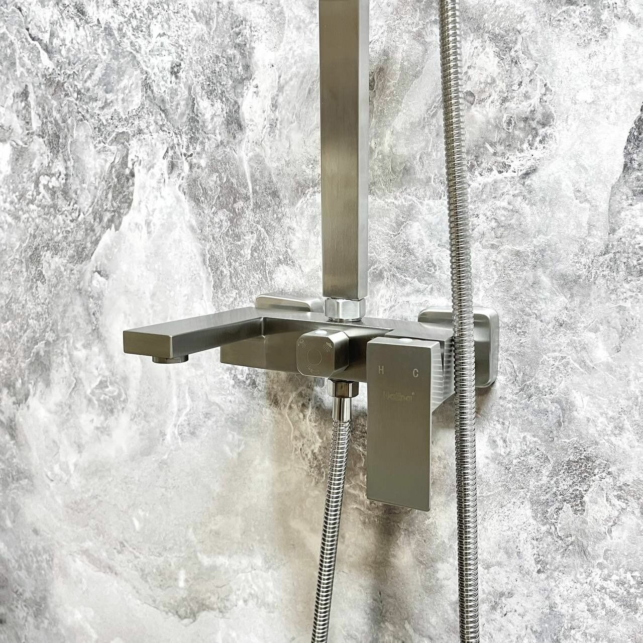 Душевая система из нержавеющей стали с однорычажным смесителем, ручным душем и тропической лейкой Haiba HB24803 цвет-серебристый/матовый.