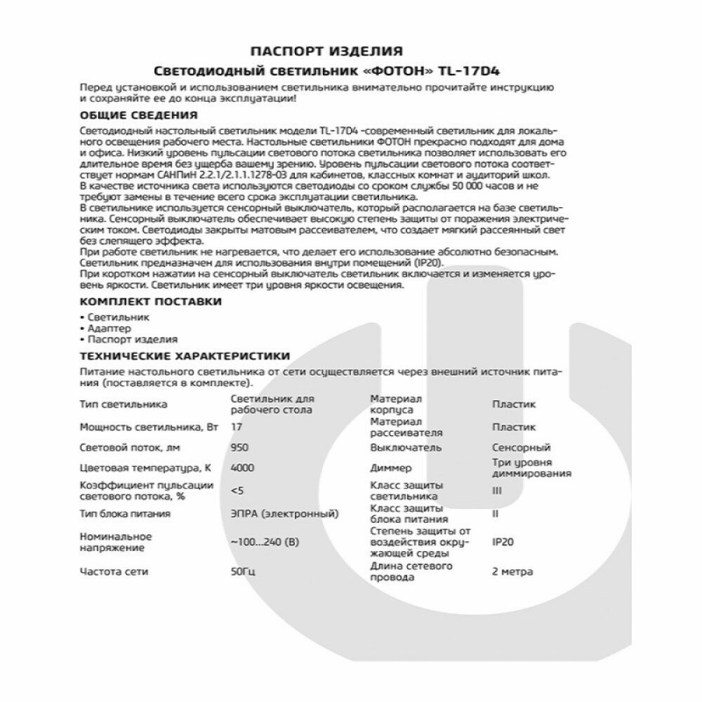 Фотон Настольный светильник светодиодный сетевой TL-17D4-W 17 Вт белый 24390