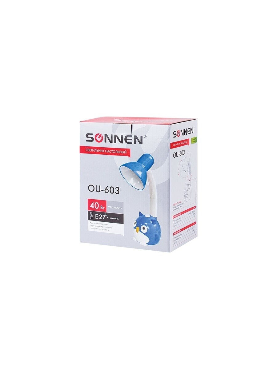 Купить Лампа (светильник) настольная детская для рабочего стола OU-603 с совой, на подставке, цоколь Е27, синяя, Sonnen, 236674