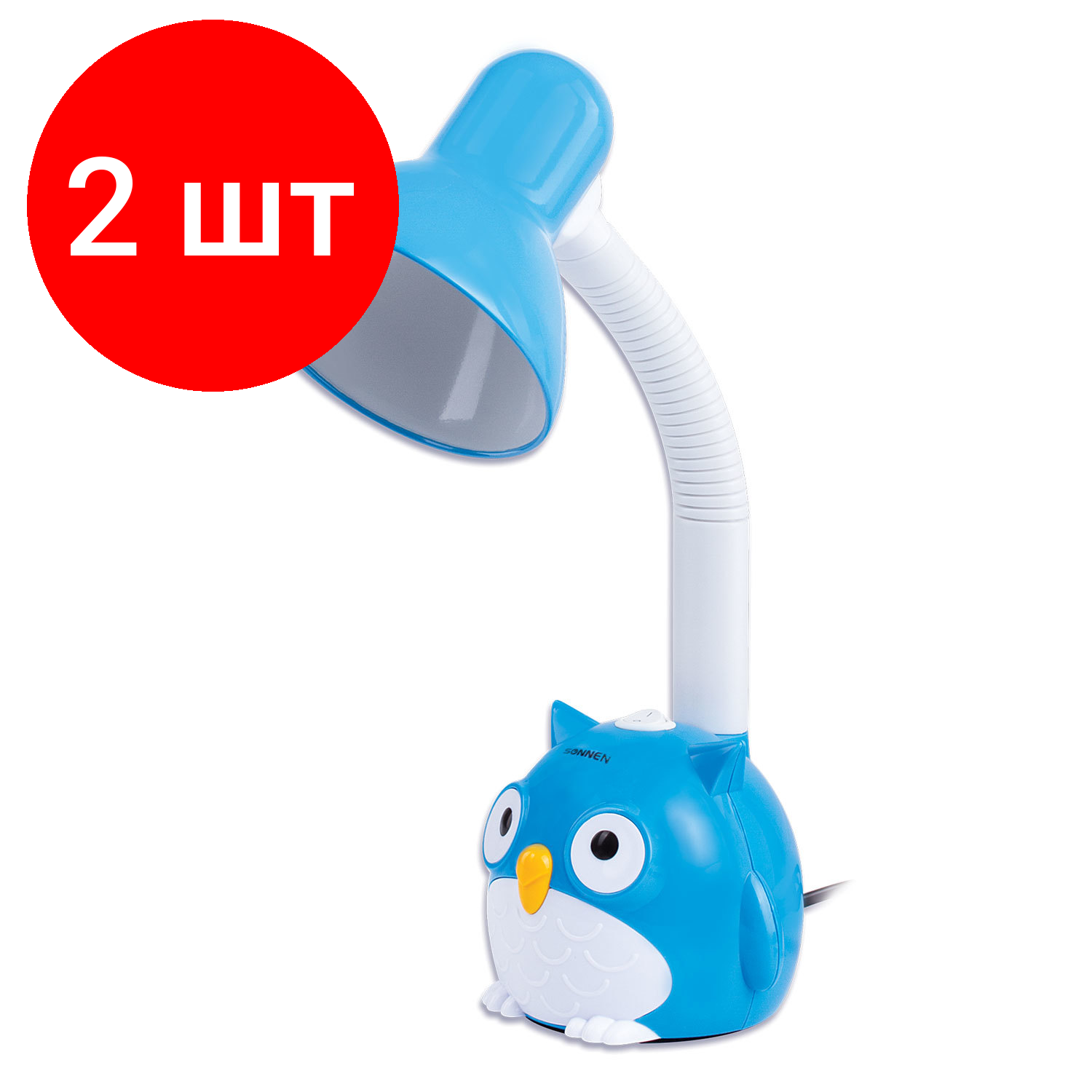 Купить Комплект 2 шт, Светильник настольный SONNEN OU-603, на подставке, цоколь Е27, "Сова", синий, 236674