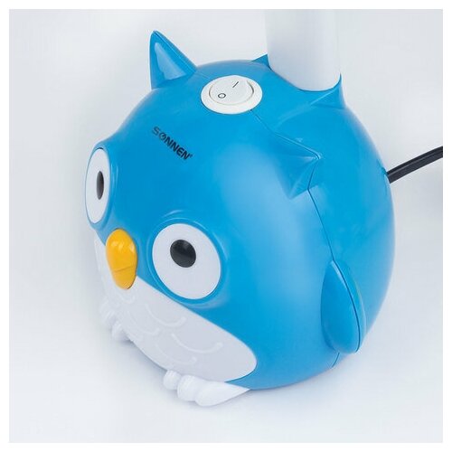 Лампа (светильник) настольная детская для рабочего стола OU-603 с совой, на подставке, цоколь Е27, синяя, Sonnen, 236674