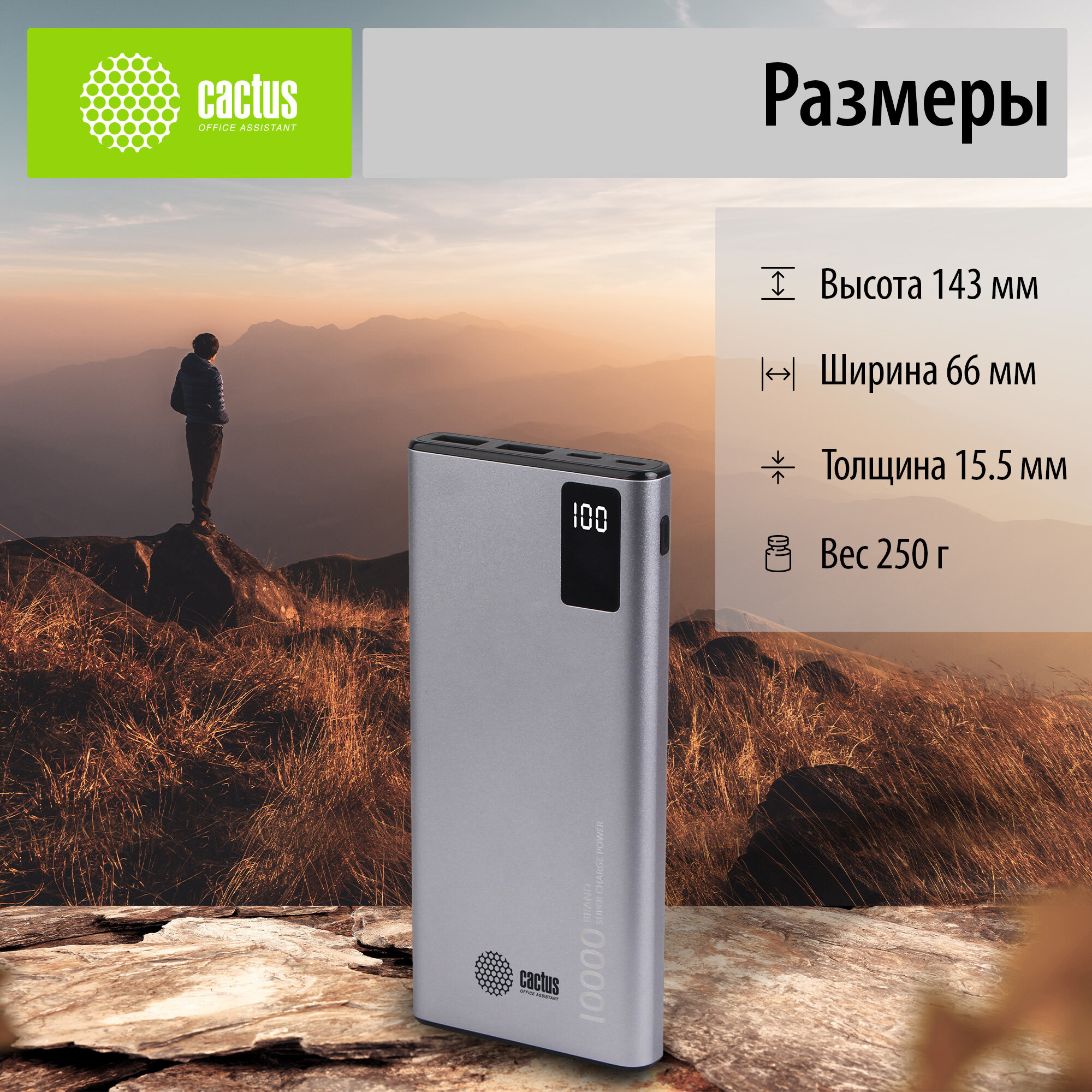 Внешний аккумулятор (Power Bank) Cactus CS-PBFSLT-10000, 10000мAч, серый