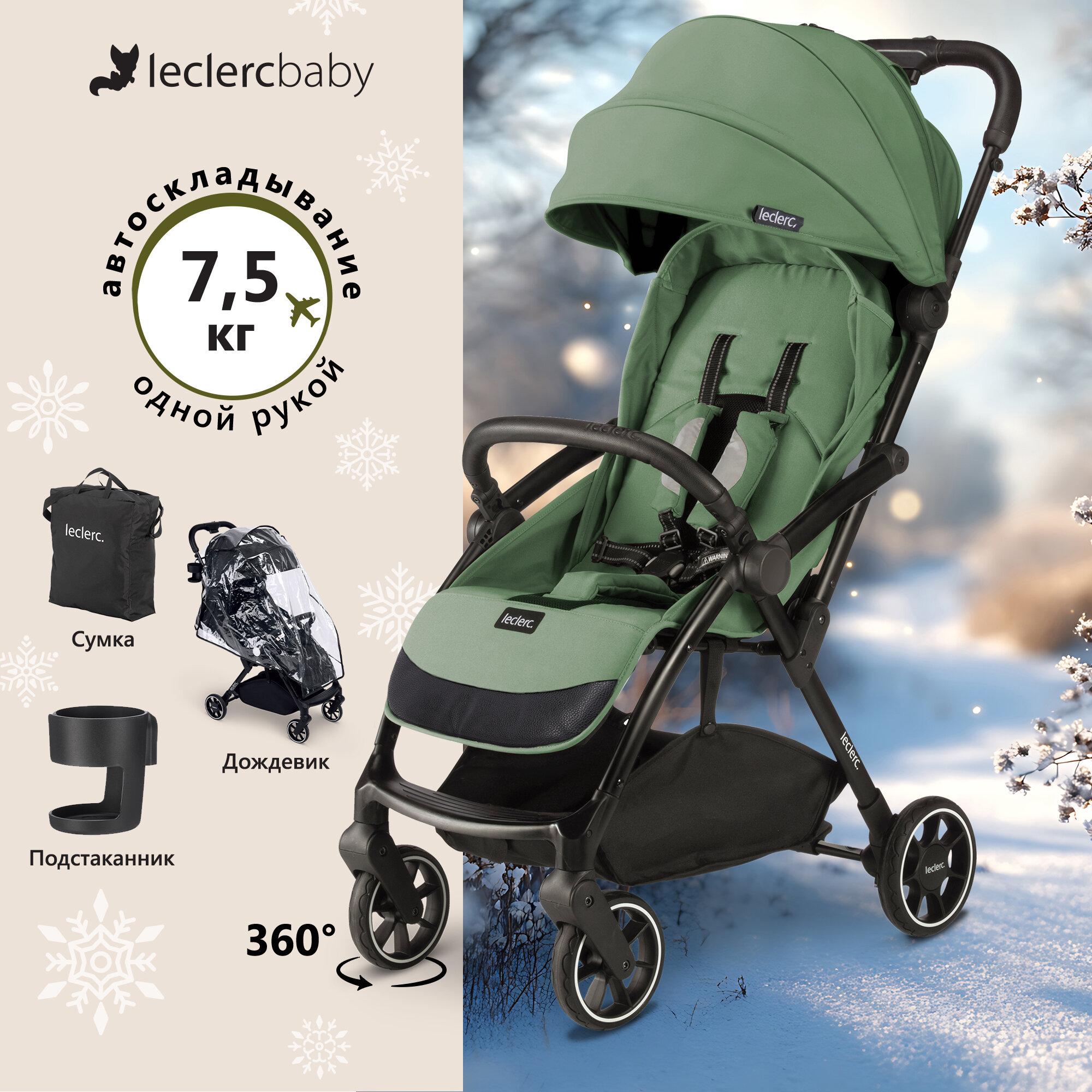 СохранитьПрогулочная коляска Leclerc Baby Magic Fold Plus, цвет Green интересное: