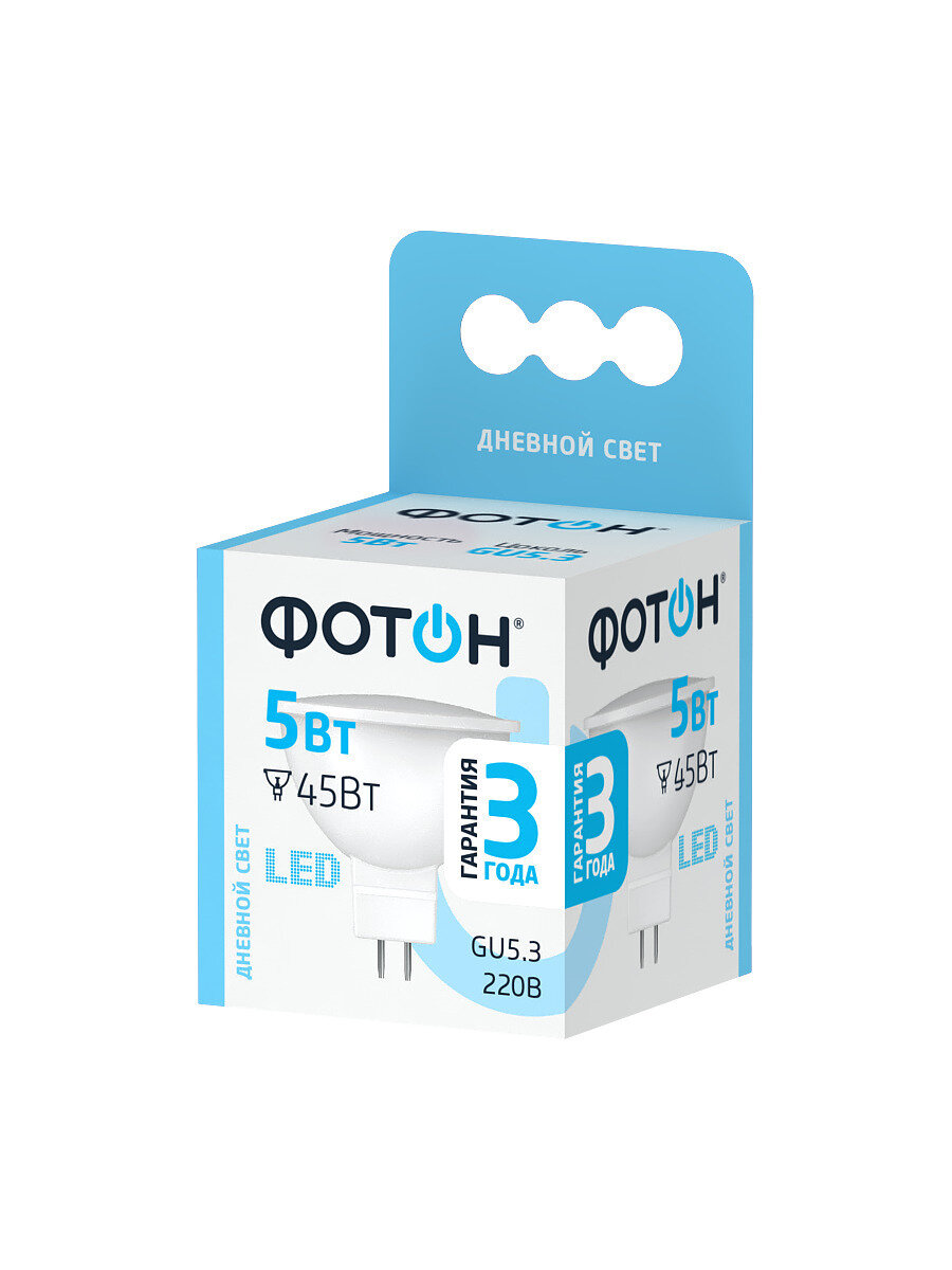 Фотон Лампа светодиодная LED MR16 5W GU5.3 4000K 23992