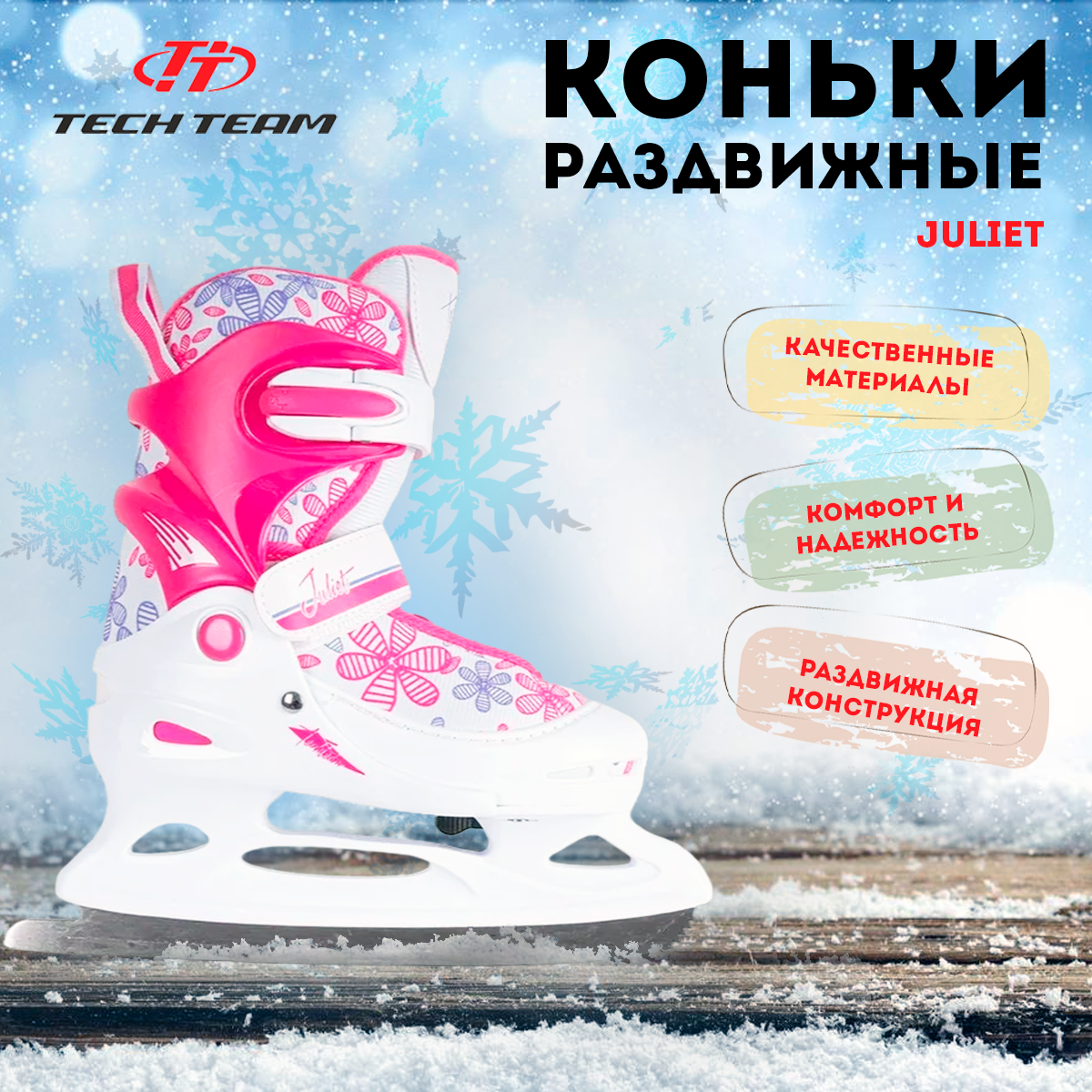 Коньки детские раздвижные TECH TEAM Juliet (38-41 / белый)