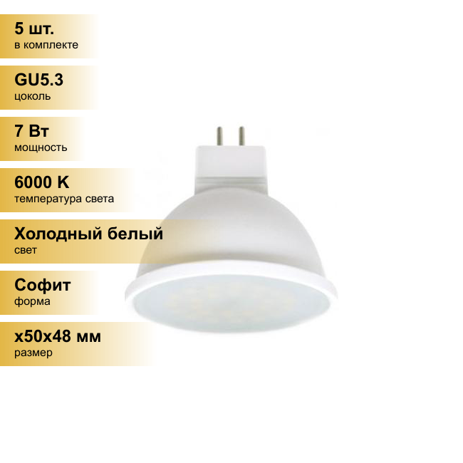 Сохранить(5 шт.) Светодиодная лампочка Ecola MR16 GU5.3 220V 7W 6000K 6K 48x50 матов. M2RD70ELC Холодный белый. Цоколь GU5.3 интересное: