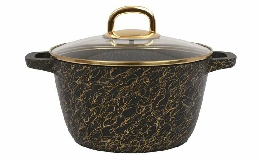 Кастрюля Kukmara Грация антиприграрная литая 2,5л, стеклянная крышка черный/золото (кчз25а) .