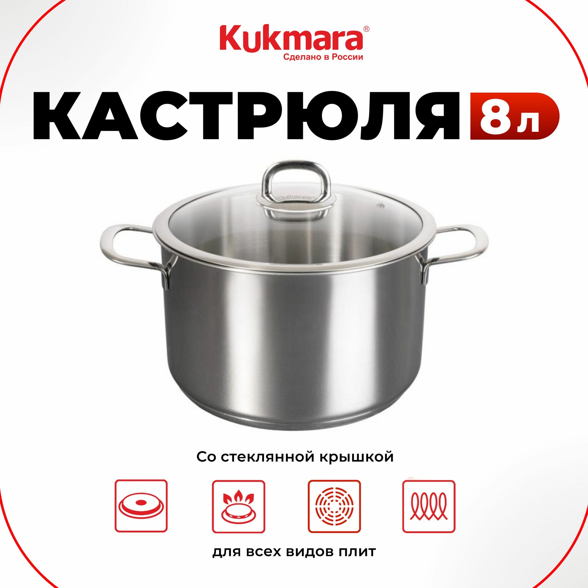СохранитьКастрюля из нержавеющей стали 8л со стеклянной крышкой, линия "Safia" Kukmara интересное: