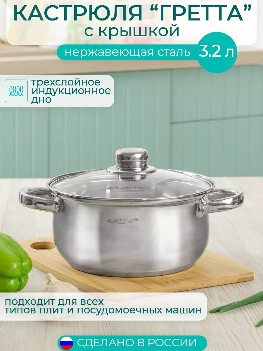 Кастрюля 3,2 л катунь, гретта, КТ04-D-30, нерж.сталь, зеркальная полировка