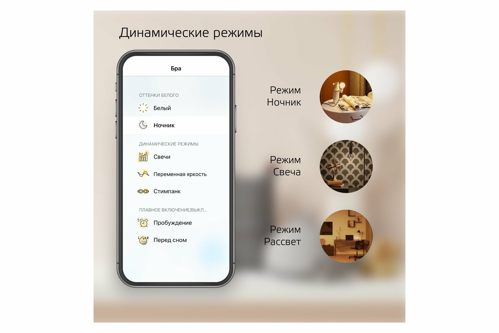 | Дополнительная информация | 7 режимов освещения по умолчанию; голосовое управление |