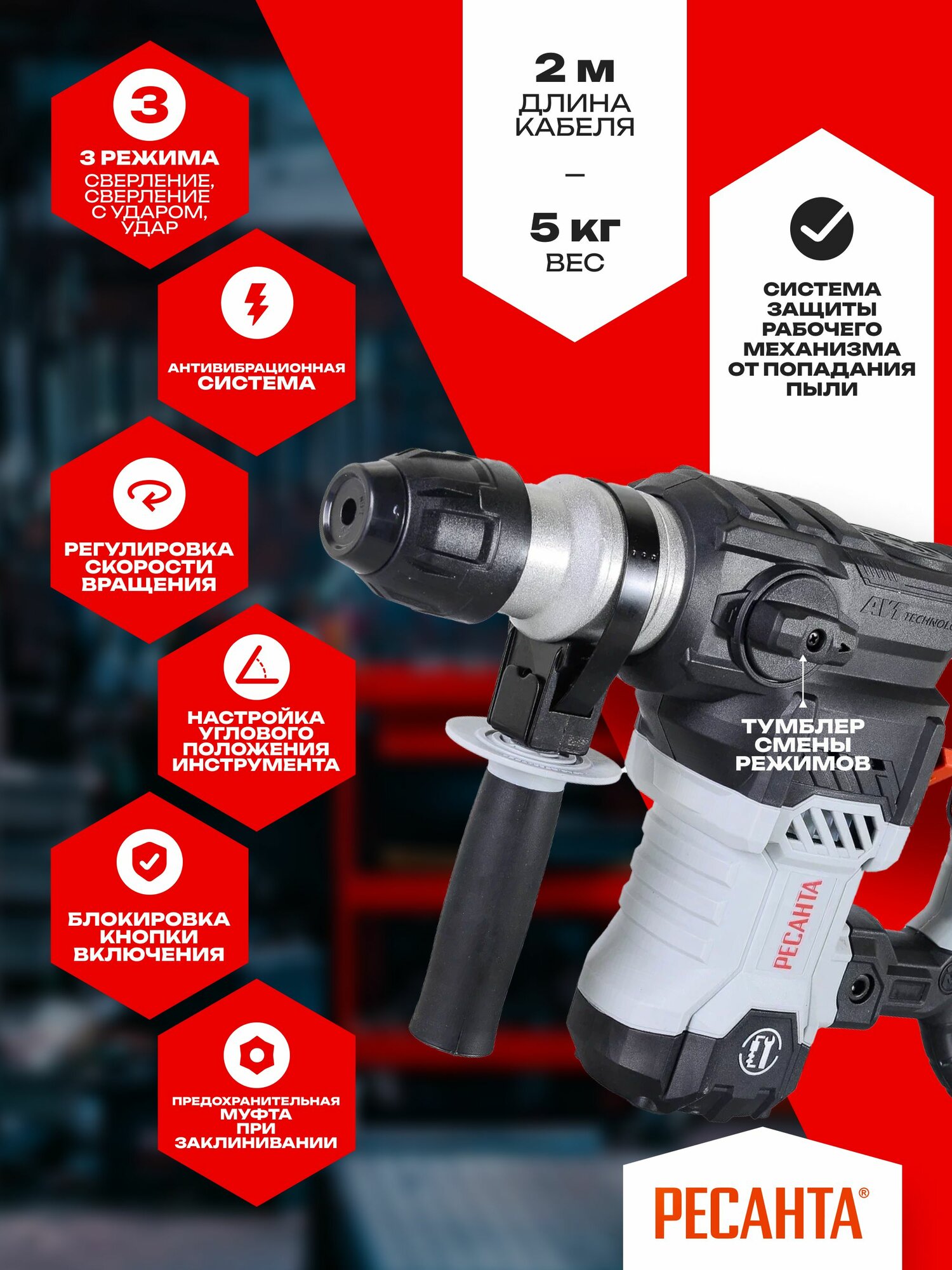 Перфоратор РЕСАНТА П-40-1600КМ, 1600 Вт