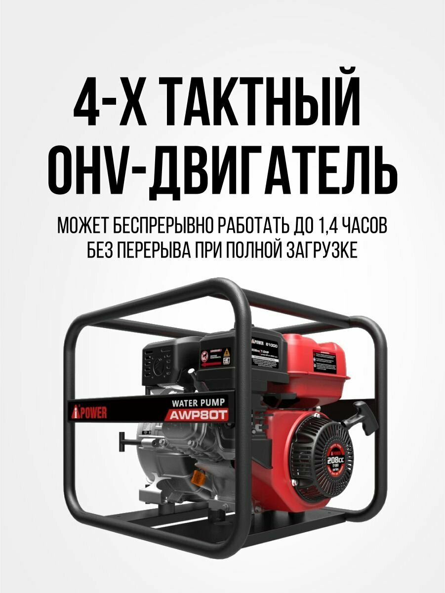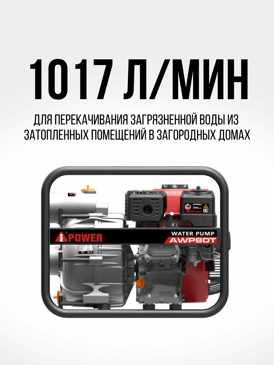 Мотопомпа A-iPower AWP80Т 7 л.с. 1017 л/мин