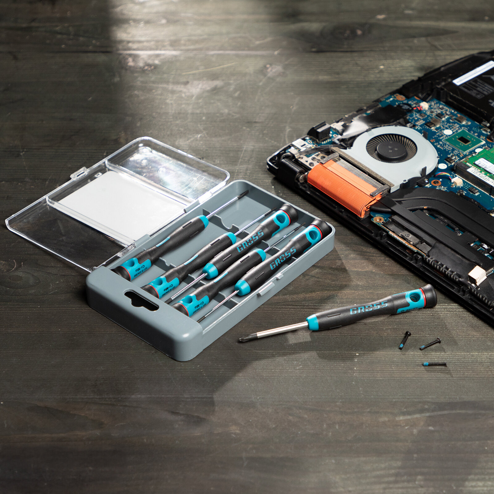 Набор отверток для точной механики, CrMo, двухкомпонентные рукоятки, 6 шт, пластиковый бокс Gross