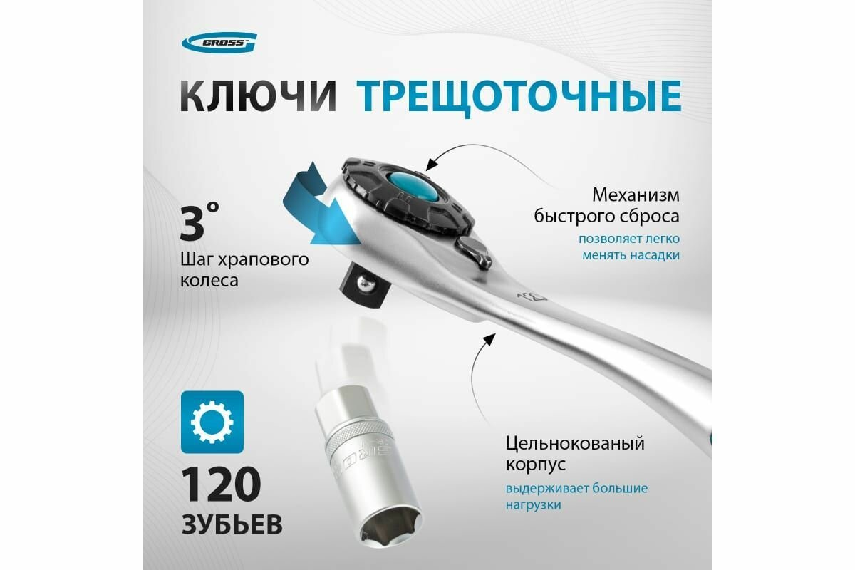 Набор инструментов, 1/4", 1/2", CrV, 120 зубьев, 109 предметов Gross интересное: