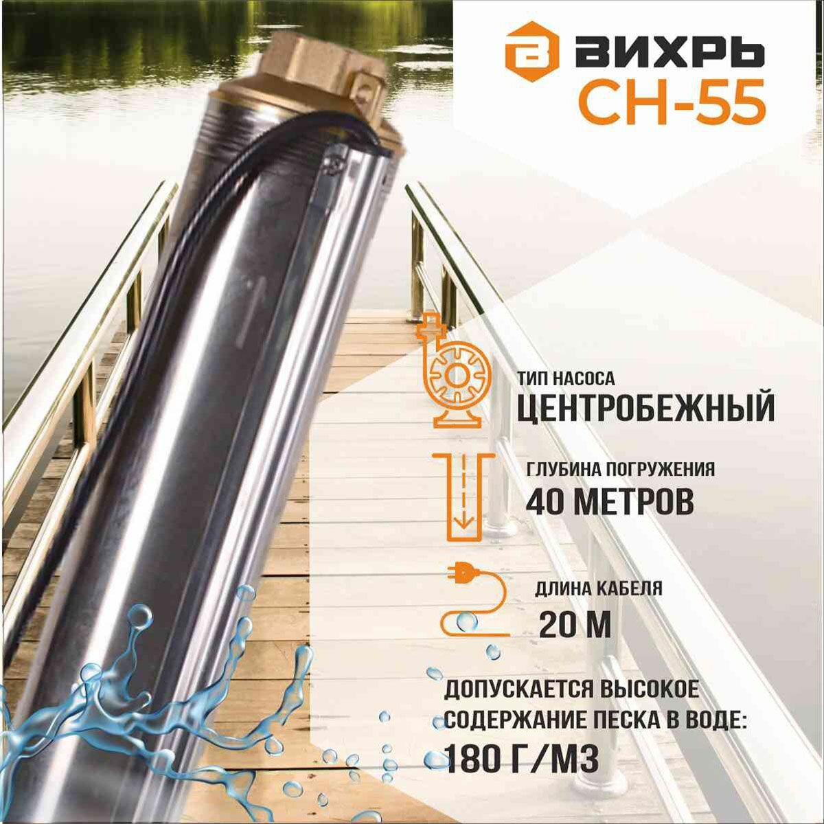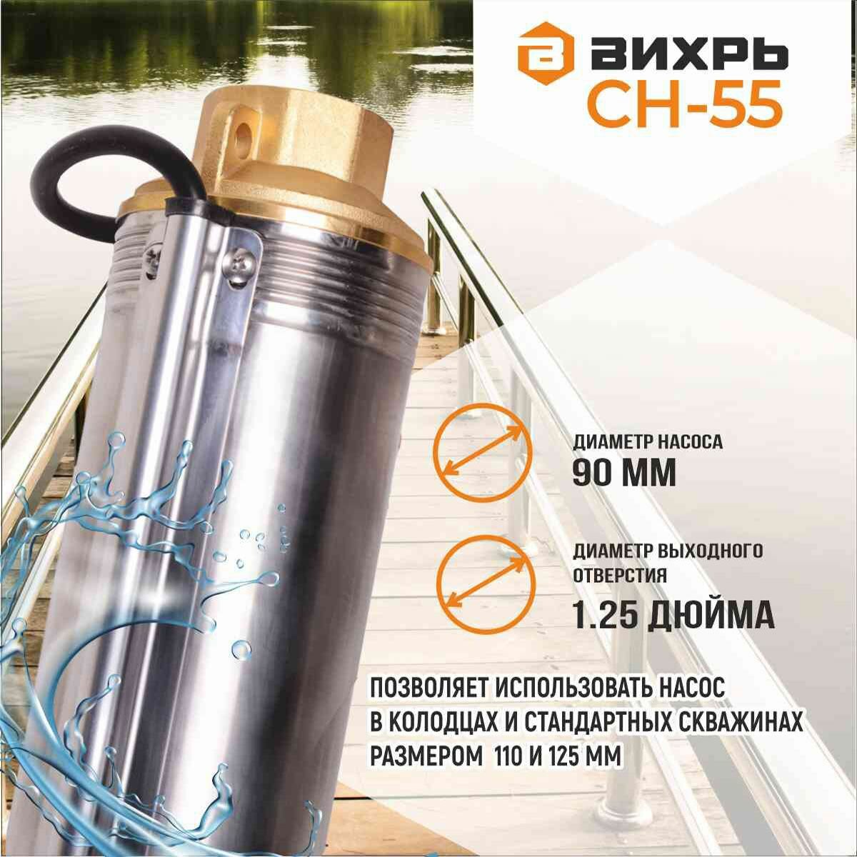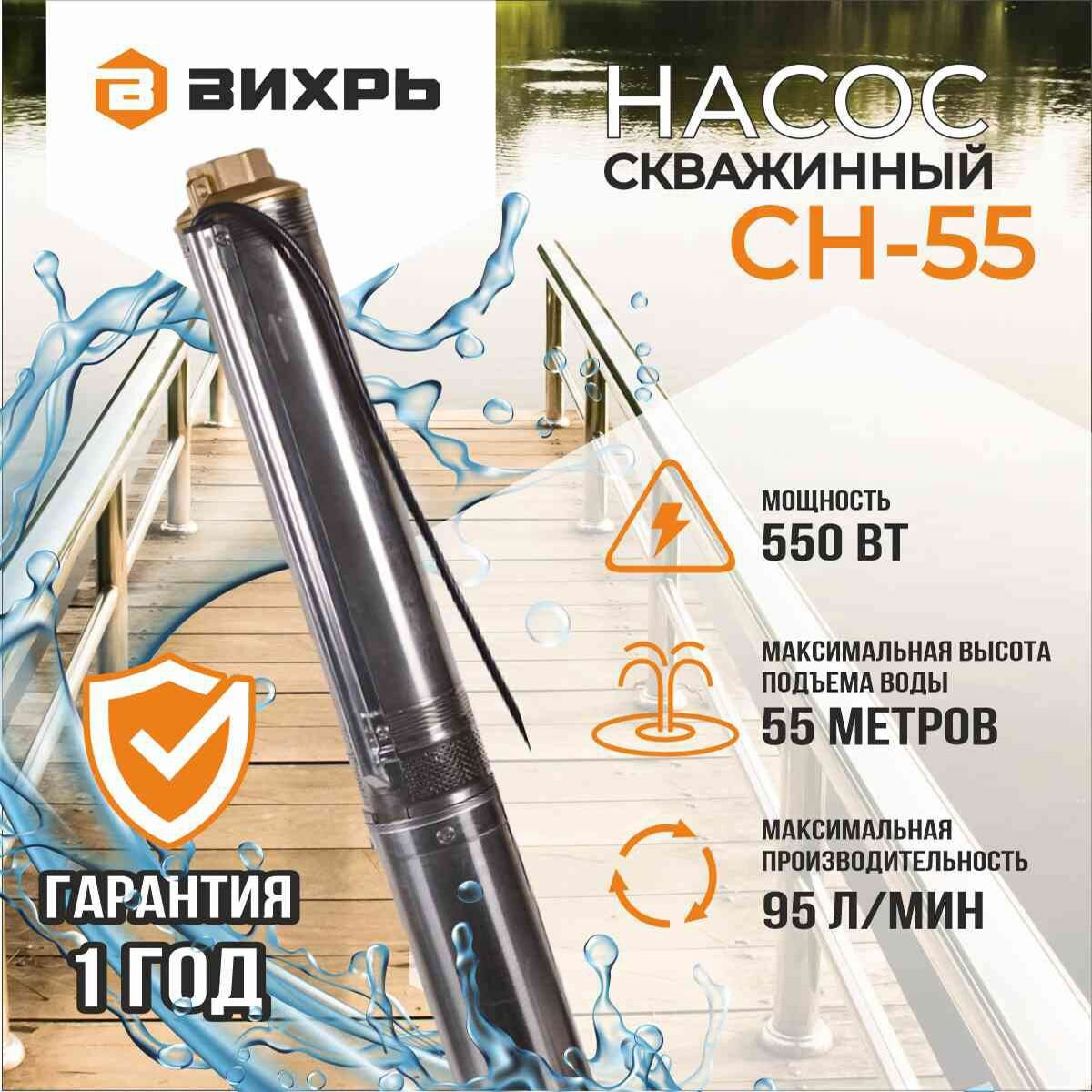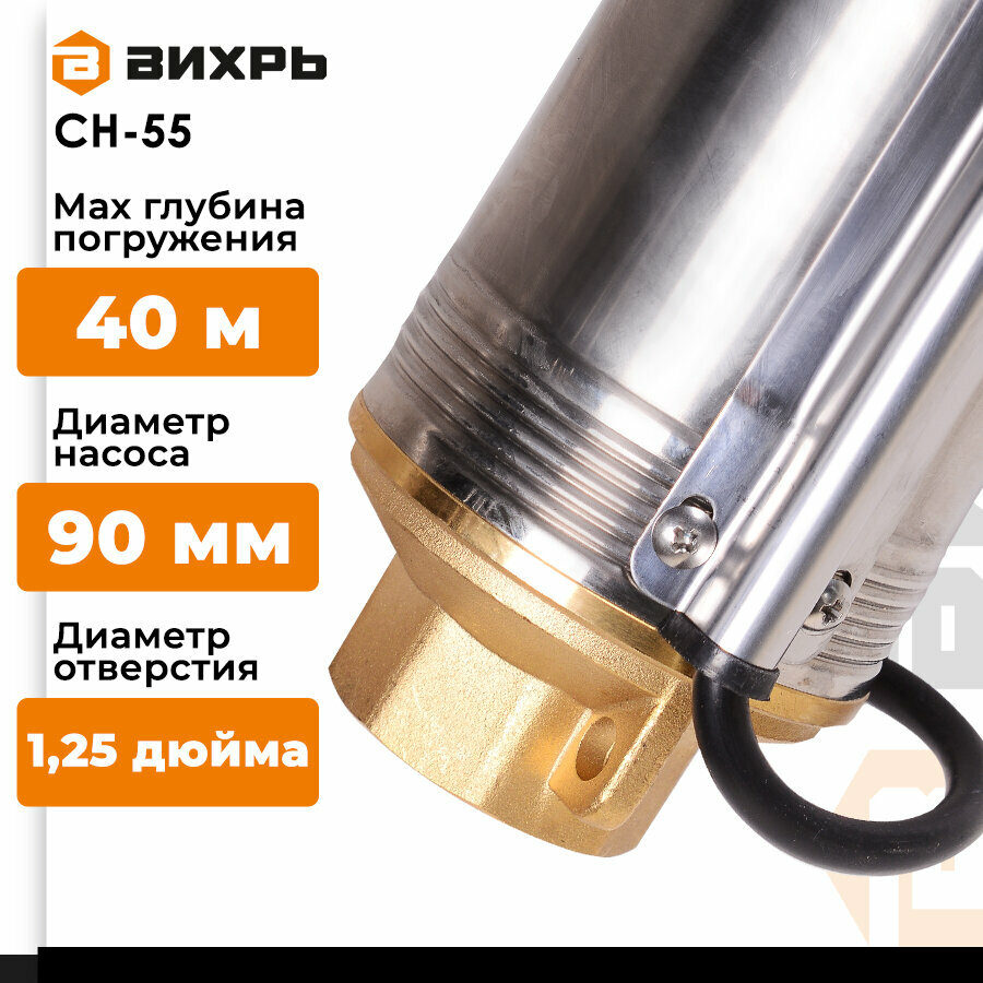 Насос / Скважинный насос вихрь СН-55 (550 Вт, высота подъема – 55 м, 95 л/мин, 1.25”, глубина погружения в воду до 40 м, 90 мм) интересное: