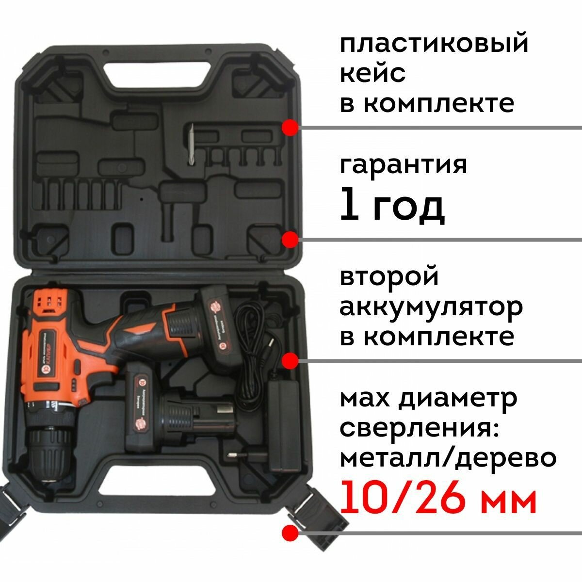 Купить Аккумуляторная дрель (Li-Ion) Калибр ДА-20/2 Кейс