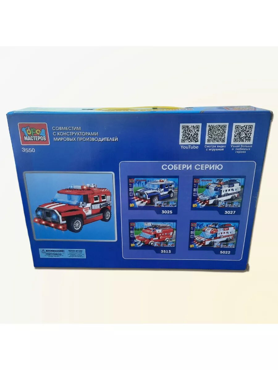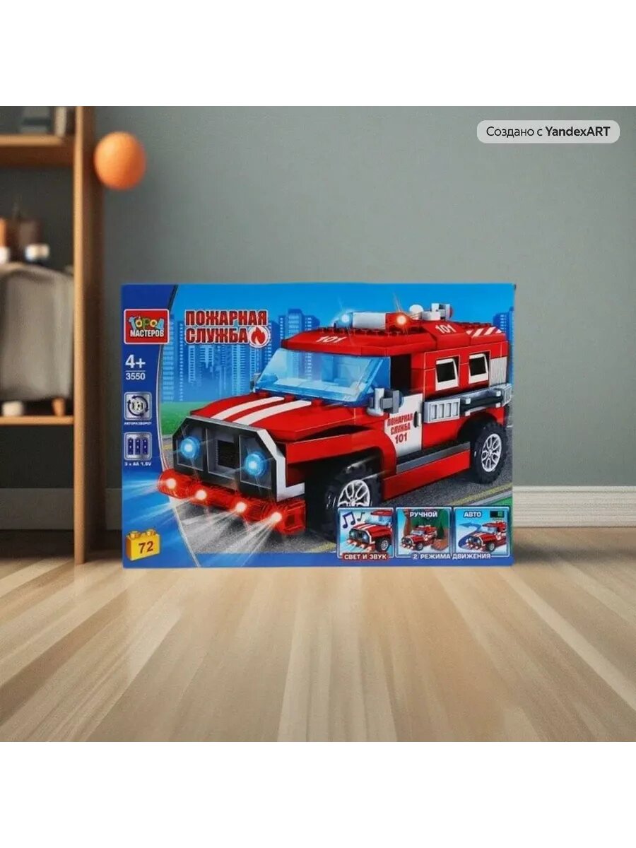 Конструктор пластмассовый Джип пожарной службы, со светом со звуком, мотор, 72 деталей 3550-ZH (Город мастеров) 314598 / Конструкторы блочные, бол. Детали / Конструкторы, строительные наборы. Трансформеры