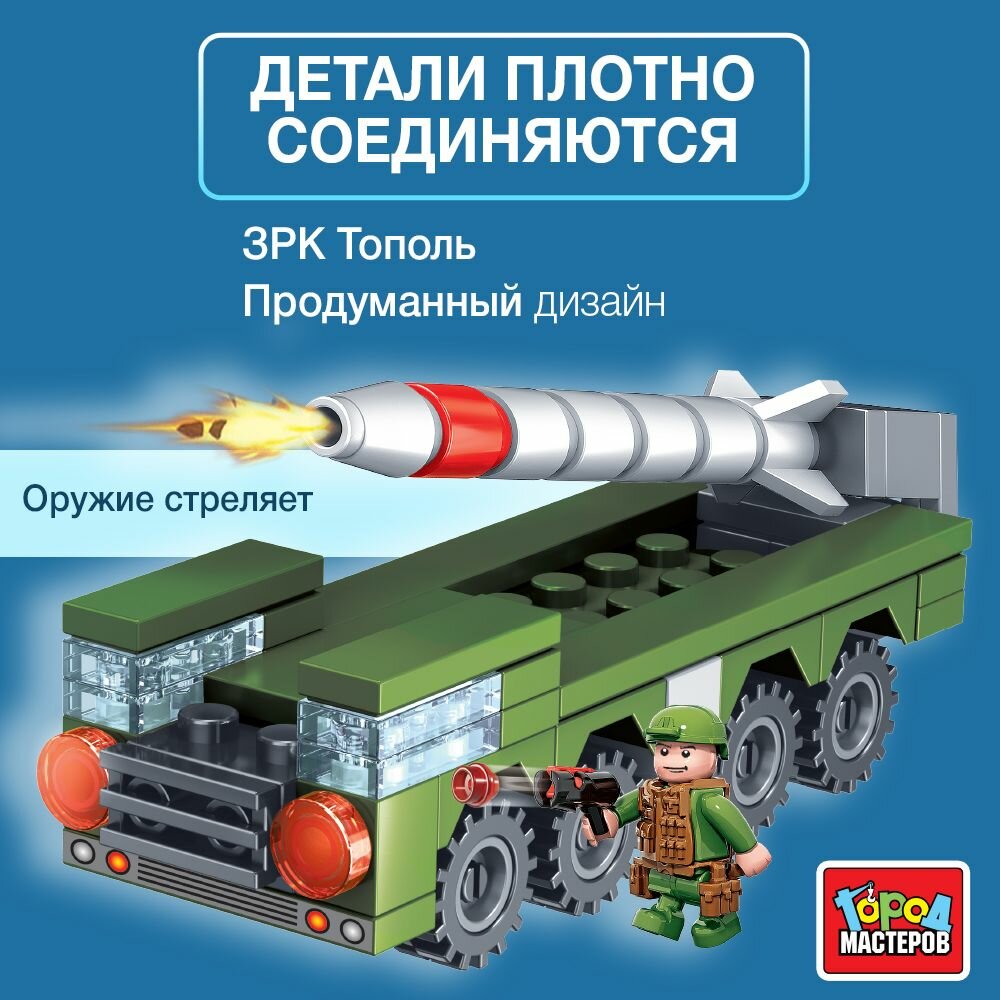 Конструктор пластмассовый армия зрк тополь с фигуркой, 70дет, 7161-UU (Город мастеров) интересное: