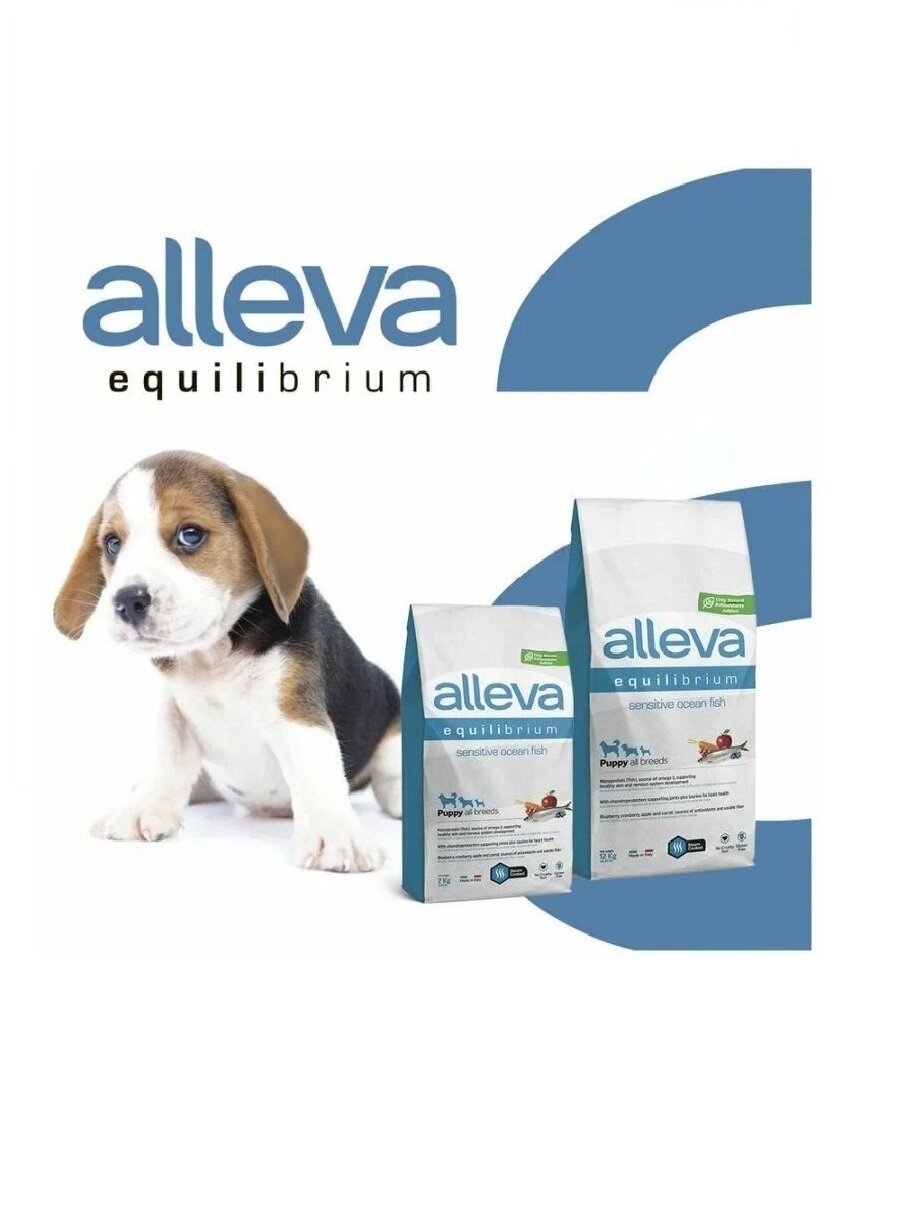 ALLEVA EQUILIBRIUM PUPPY ALL BREEDS SENSITIVE OCEAN FISH для щенков всех пород с чувствительным пищеварением с океанической рыбой (2 кг х 6 шт)