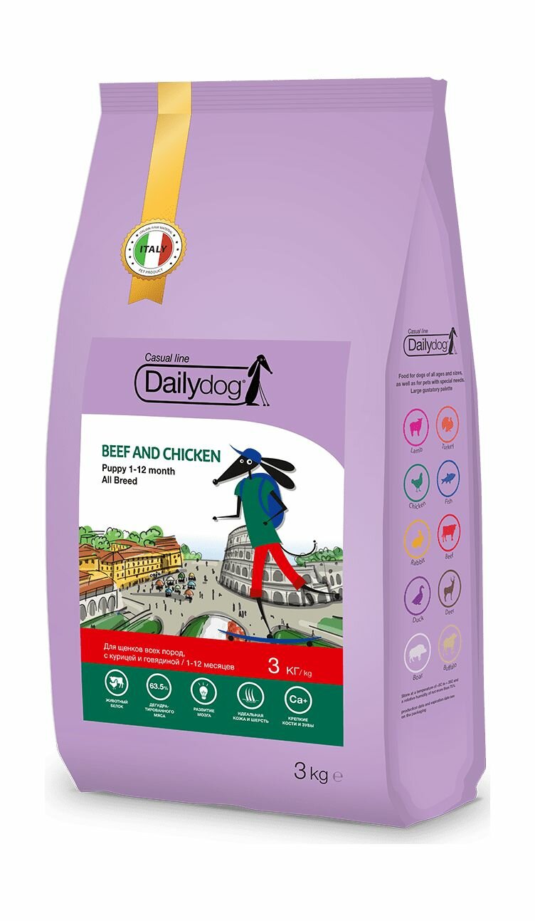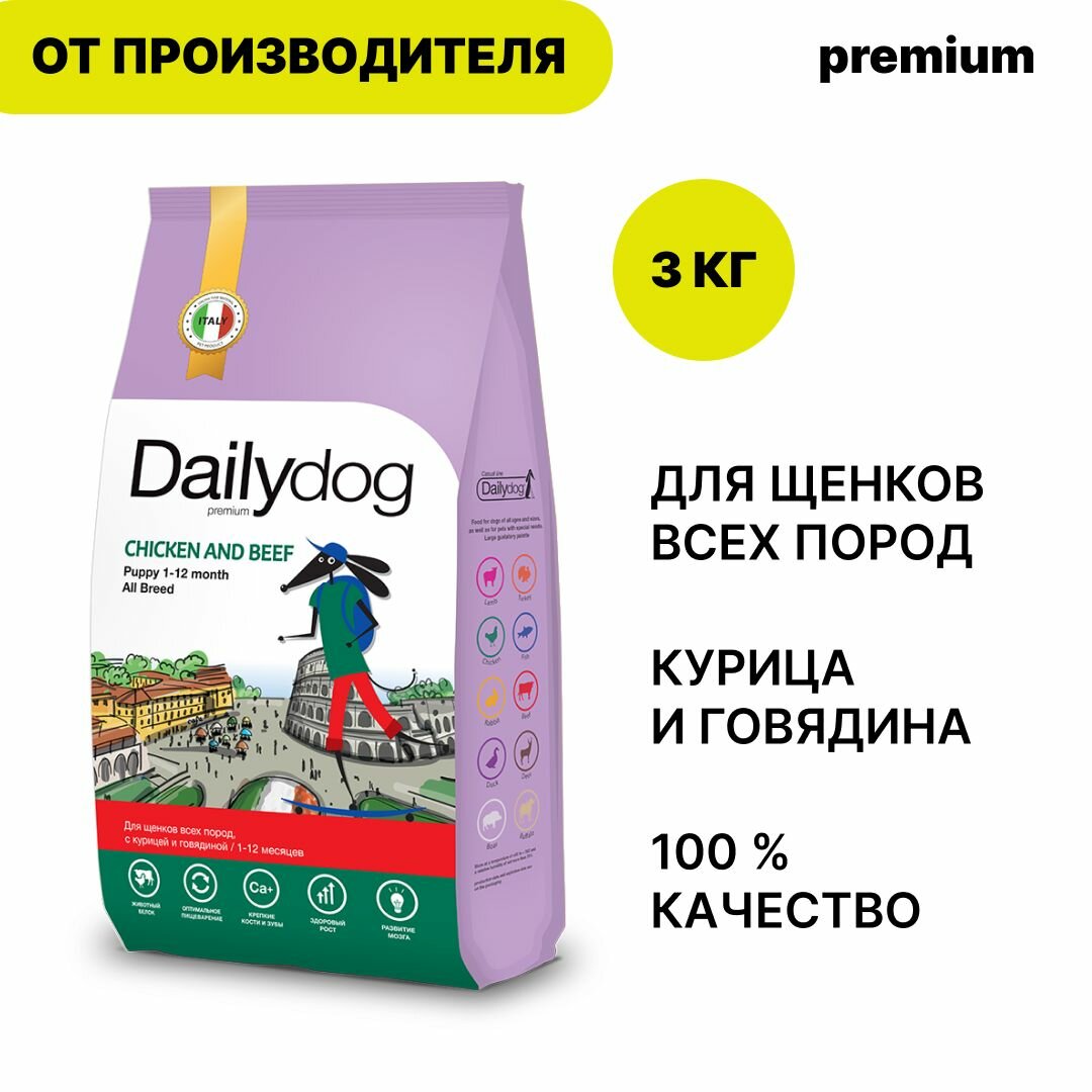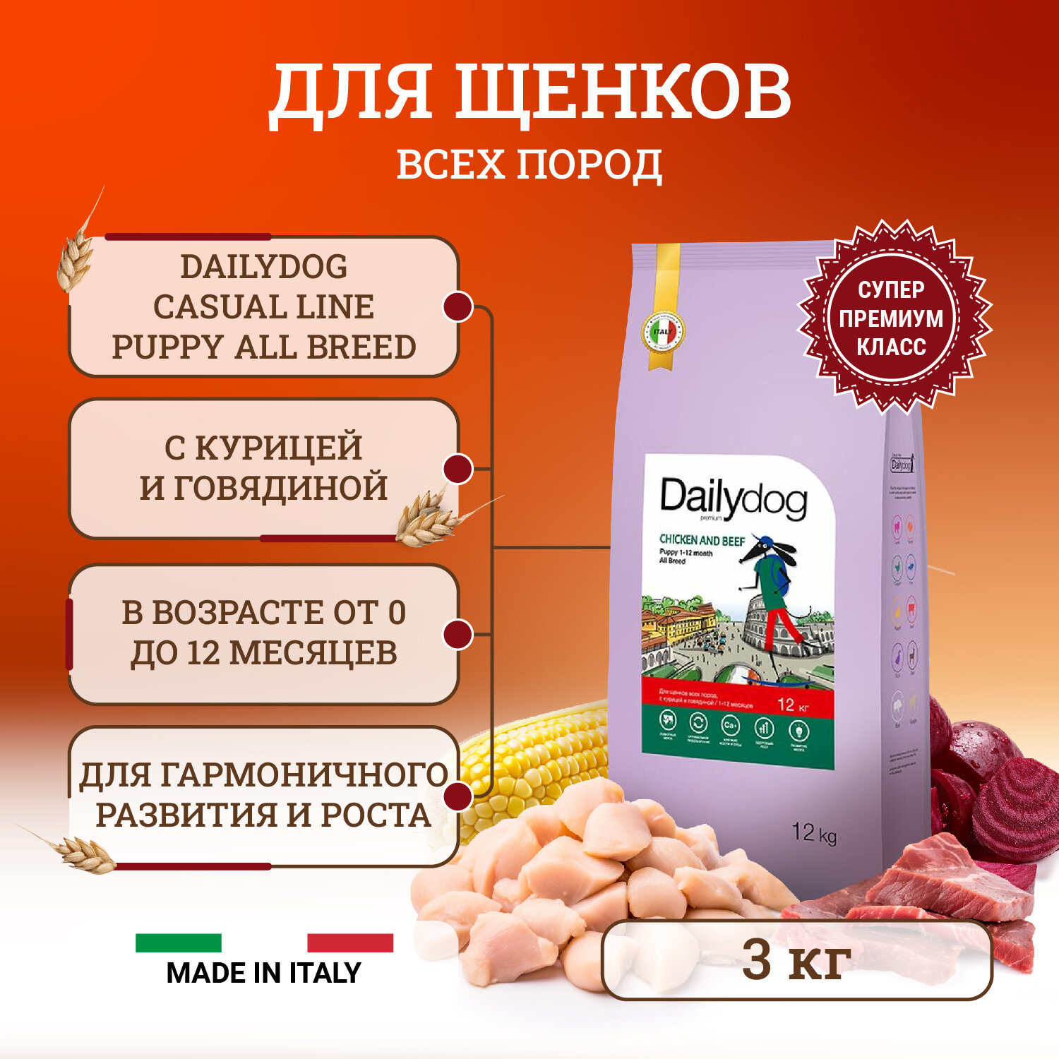 Dailydog Casual line PUPPY ALL BREED Chicken and Beef 3кг - корм для щенков всех пород с курицей и говядиной 3кг (1 шт)