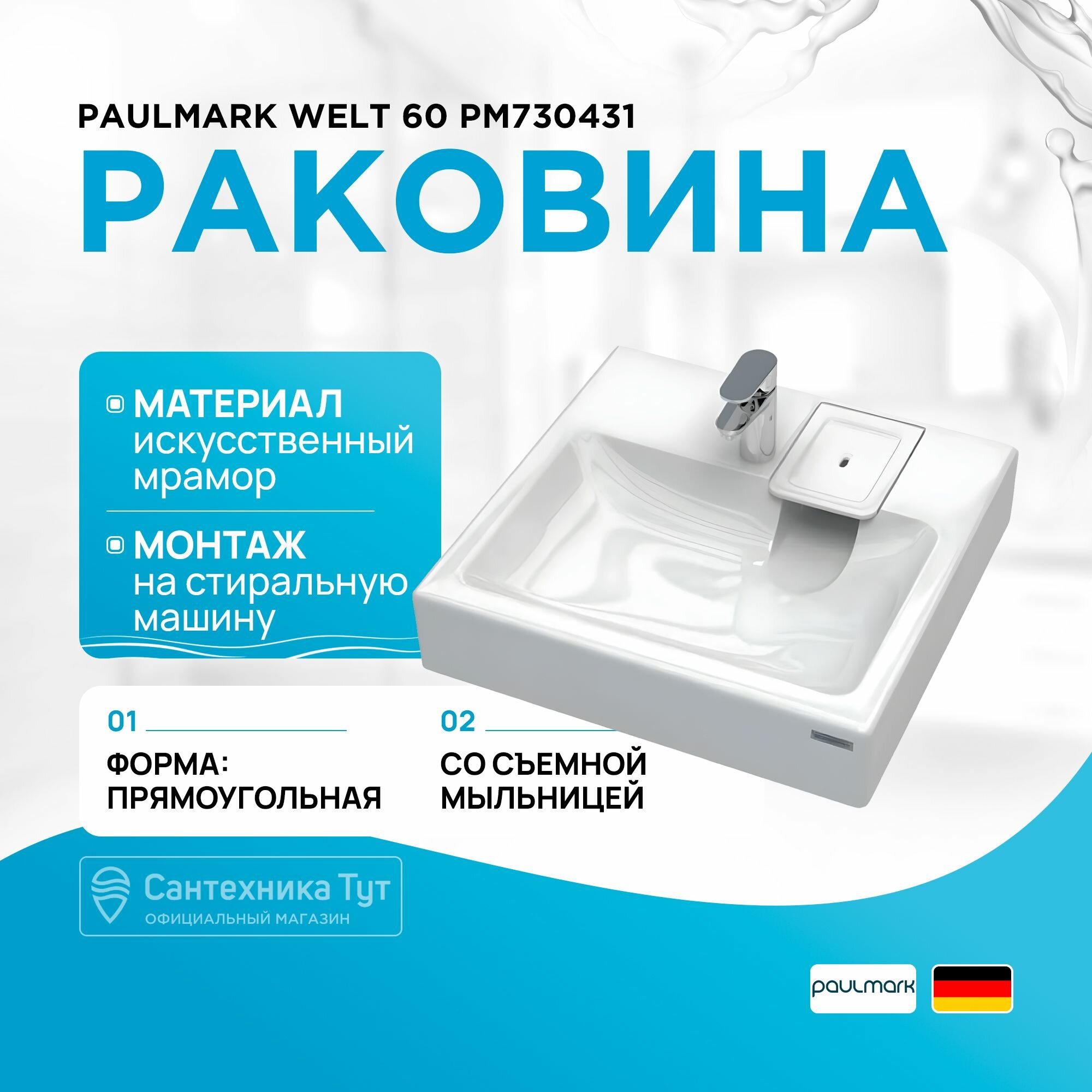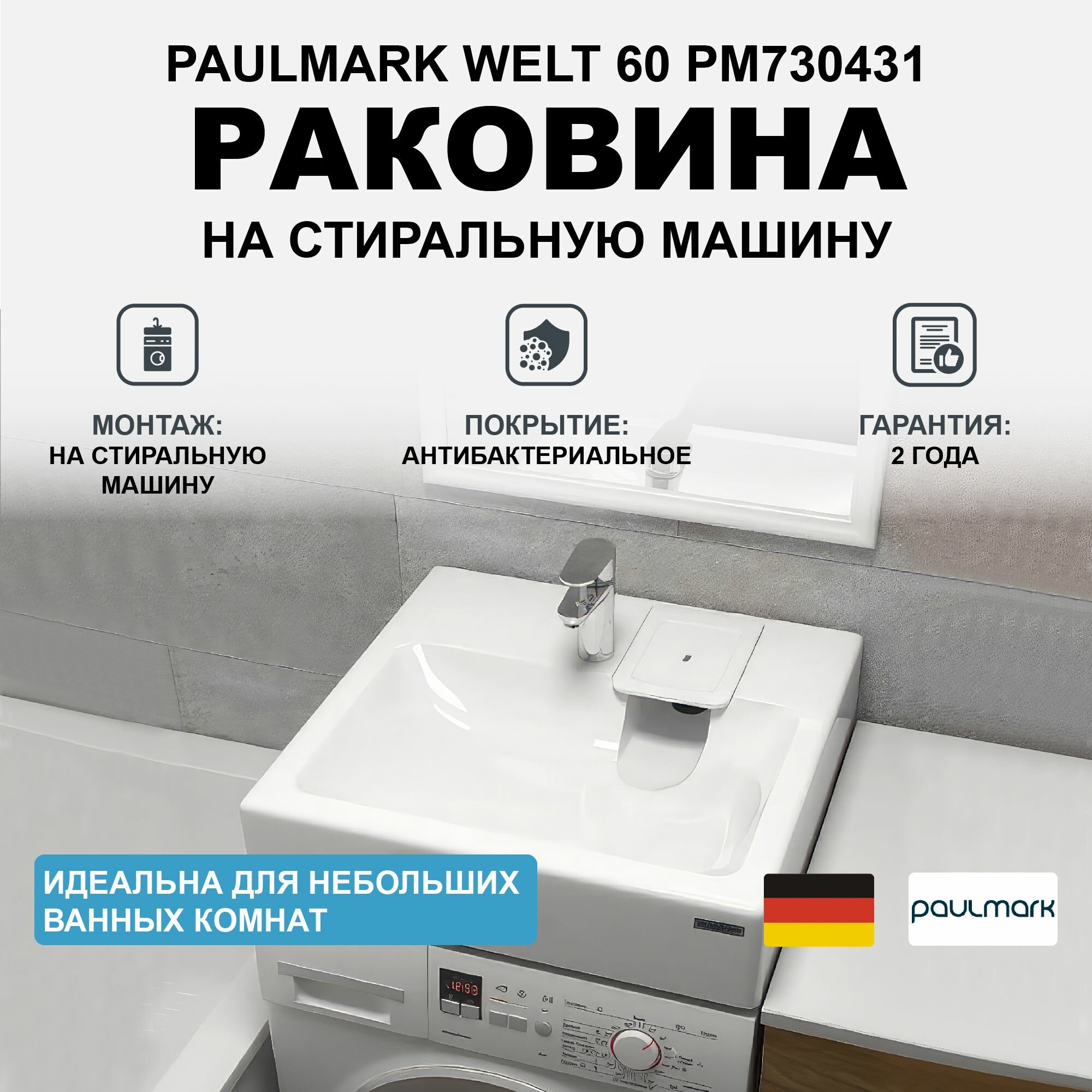 СохранитьРаковина на стиральную машину Paulmark Welt PM730431 60 х 60 см интересное: