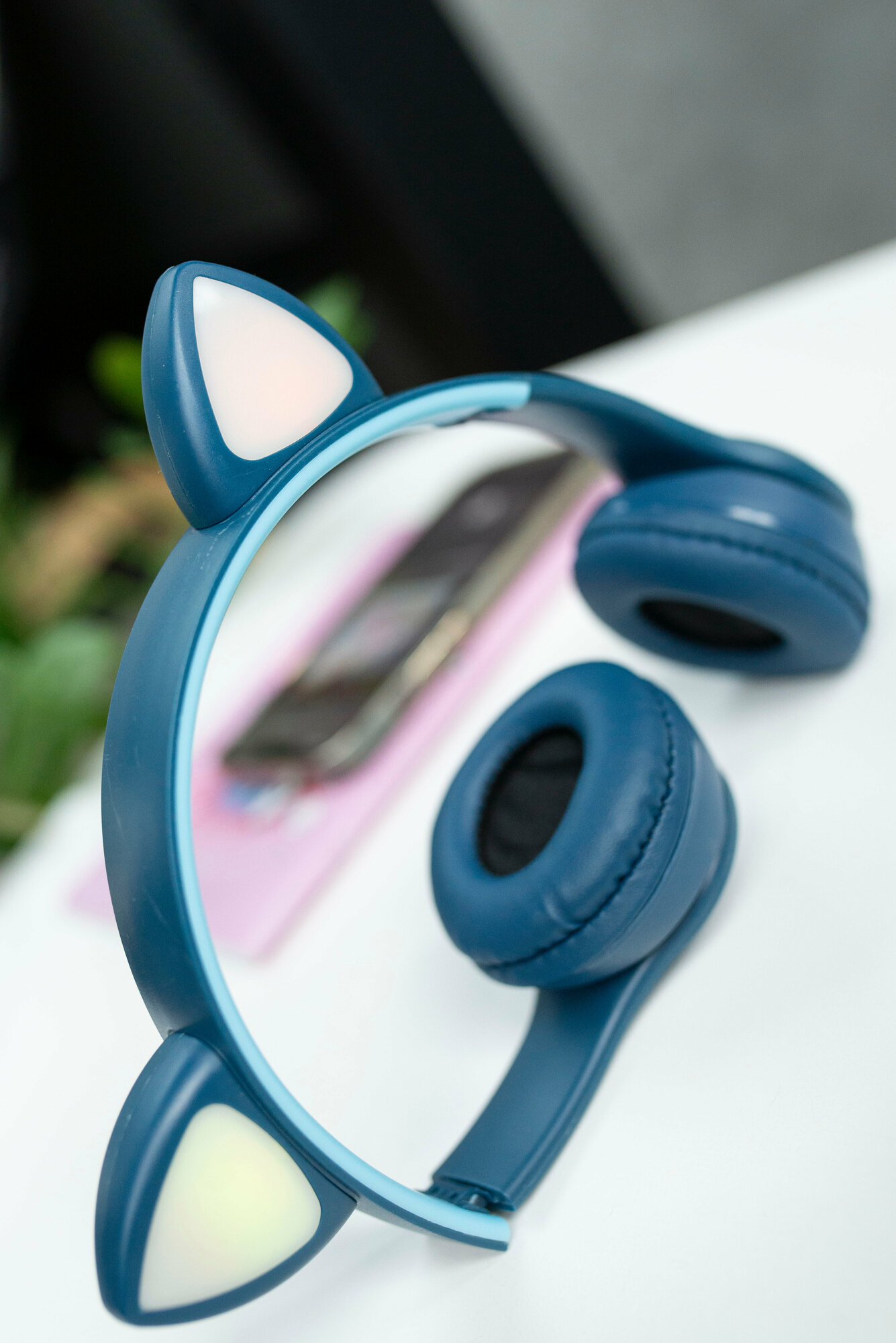 Детские беспроводные наушники накладные с кошачьими ушками, с подстветкой, 200mAh More choice HW24kids черные