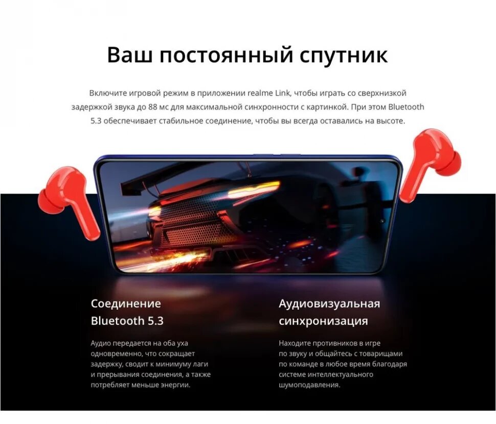 | Комплектация | realme Buds T100, руководство пользователя, амбушюры 6 шт |