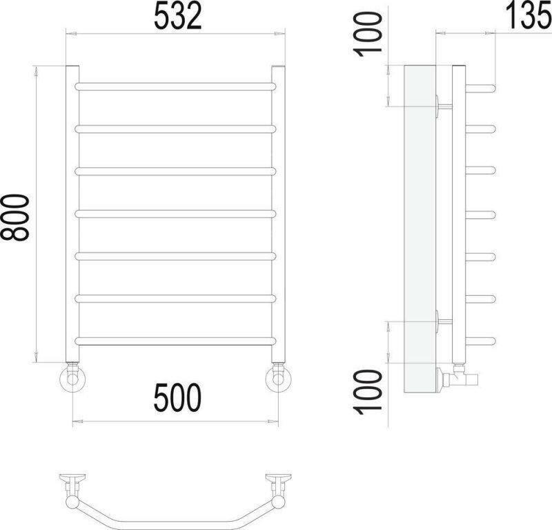 Полотенцесушитель TERMINUS Стандарт П8 (ШВ:500х800) водяной, нерж.сталь, боковое подкл. м/о 600