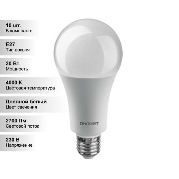 Купить (10 шт.) Светодиодная лампочка онлайт A70 30Вт 230В 4000К E27