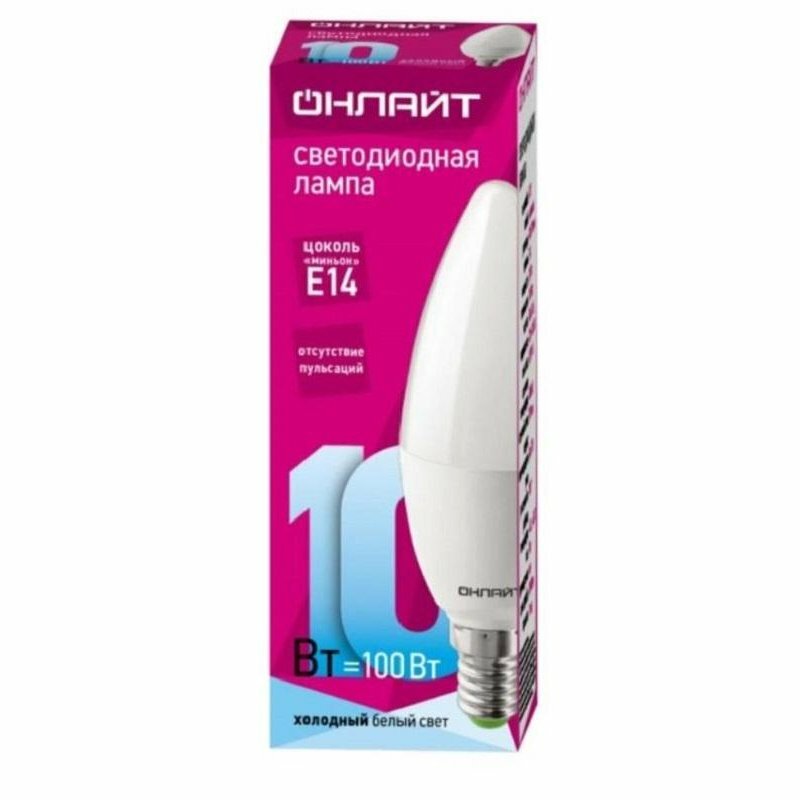 Светодиодная лампа свеча онлайт 82 914 OLL-C37-10-230-2.7K-E14-PROMO, цена за 1 шт.