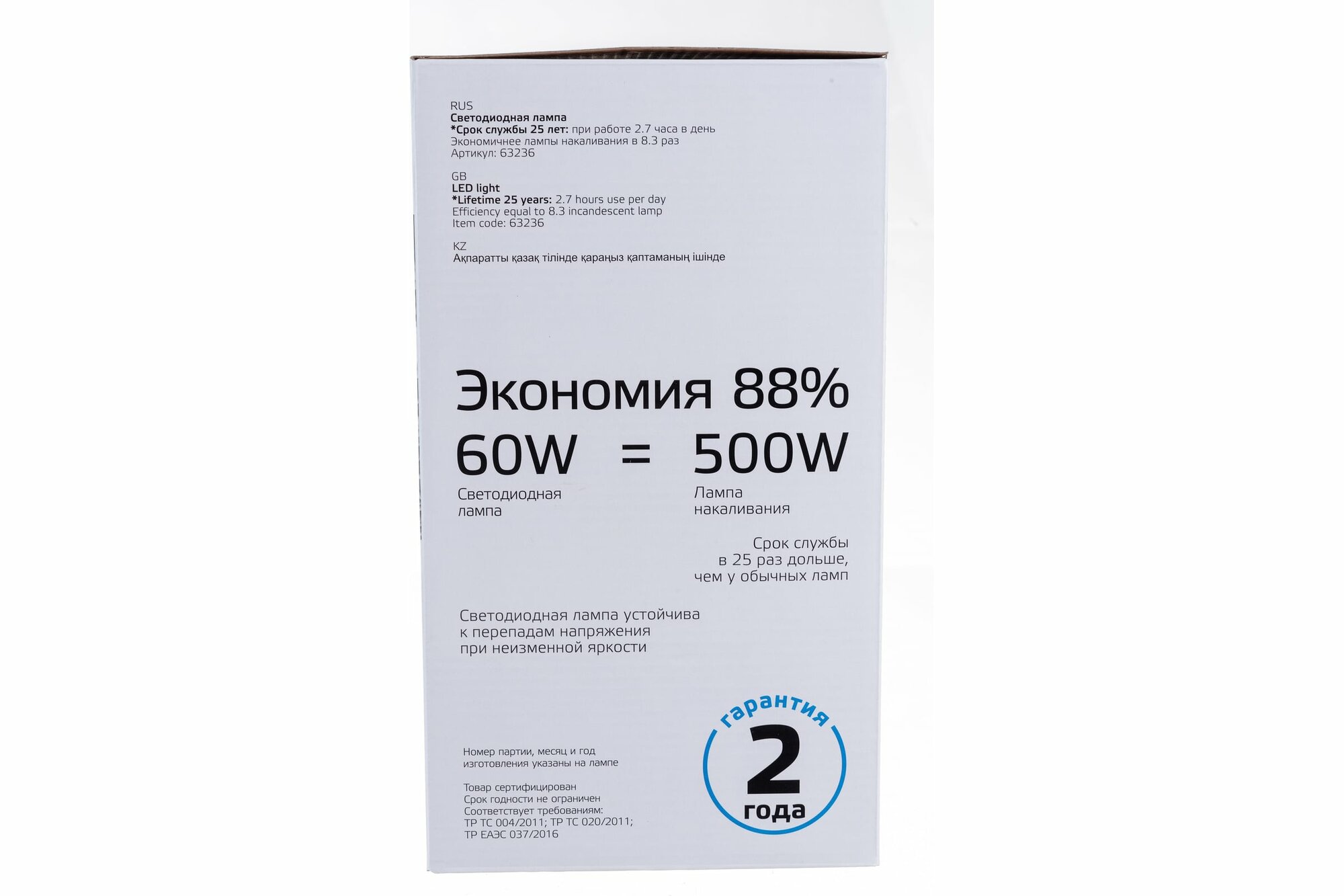 | Эквивалент лампы накаливания | 500 Вт |
